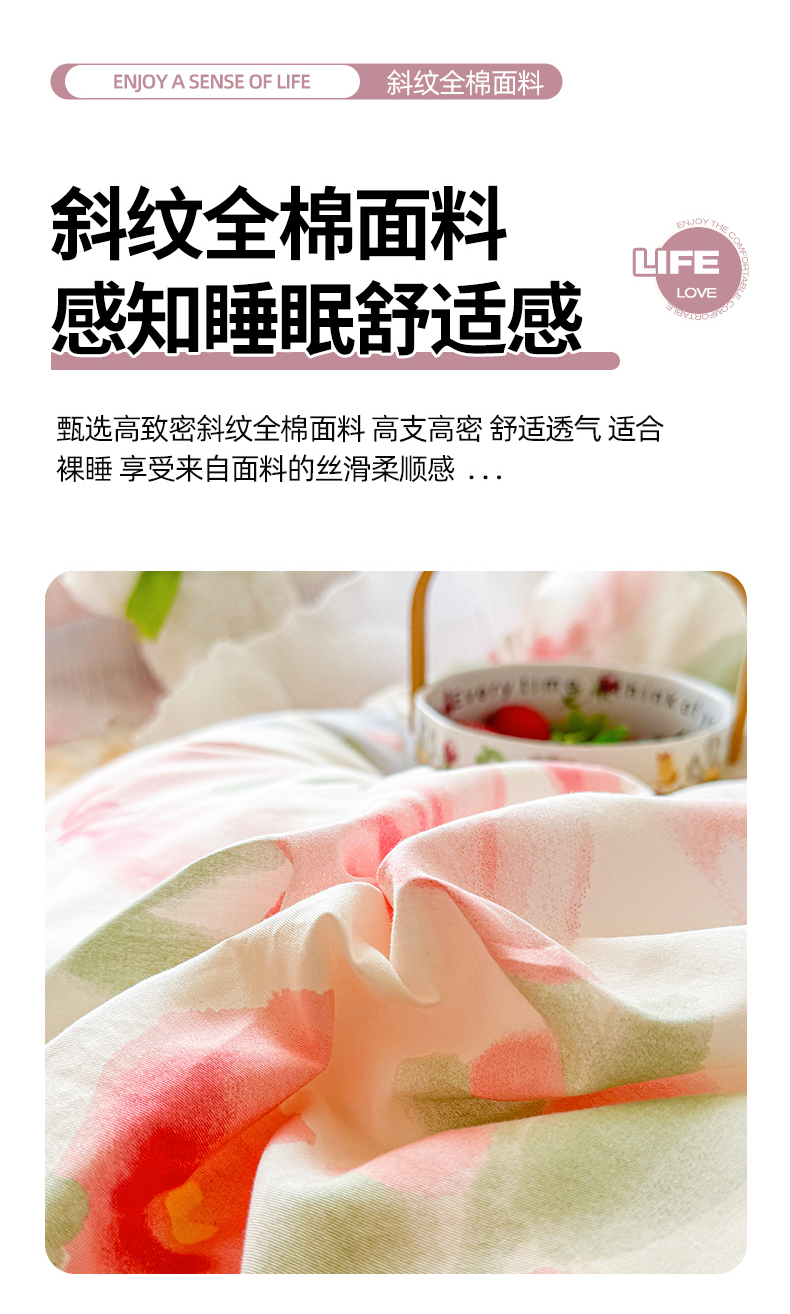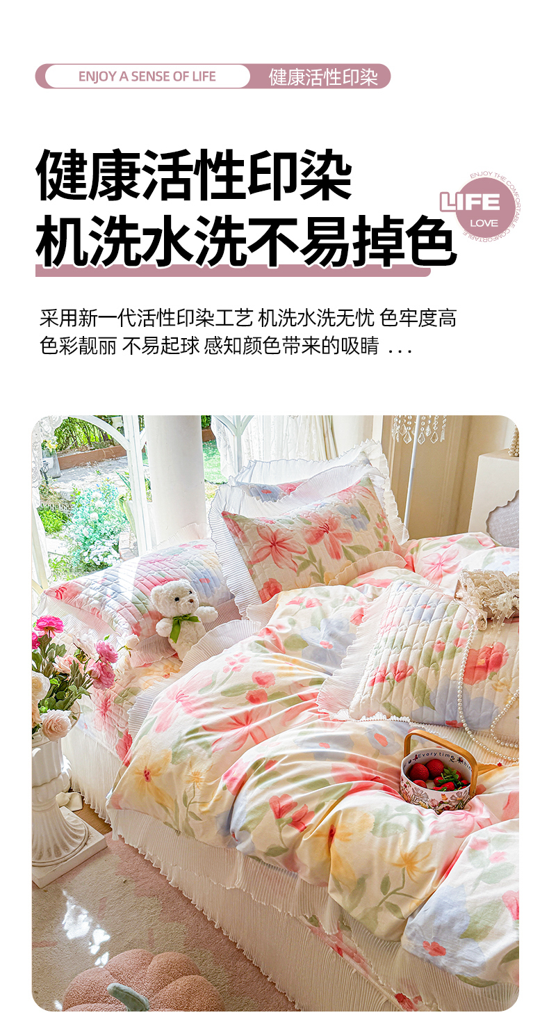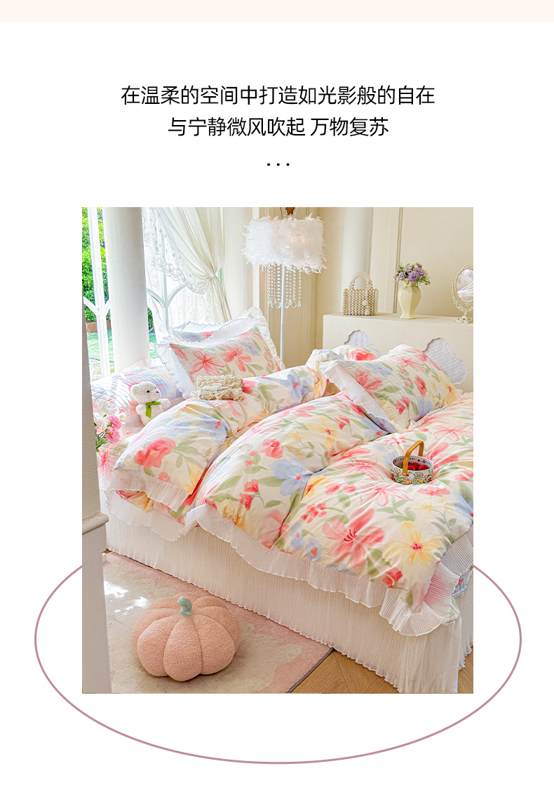 商品名称:虹星家纺 2025新款斜纹全棉纯棉印花床盖四件套-清甜 清甜-婉如初见