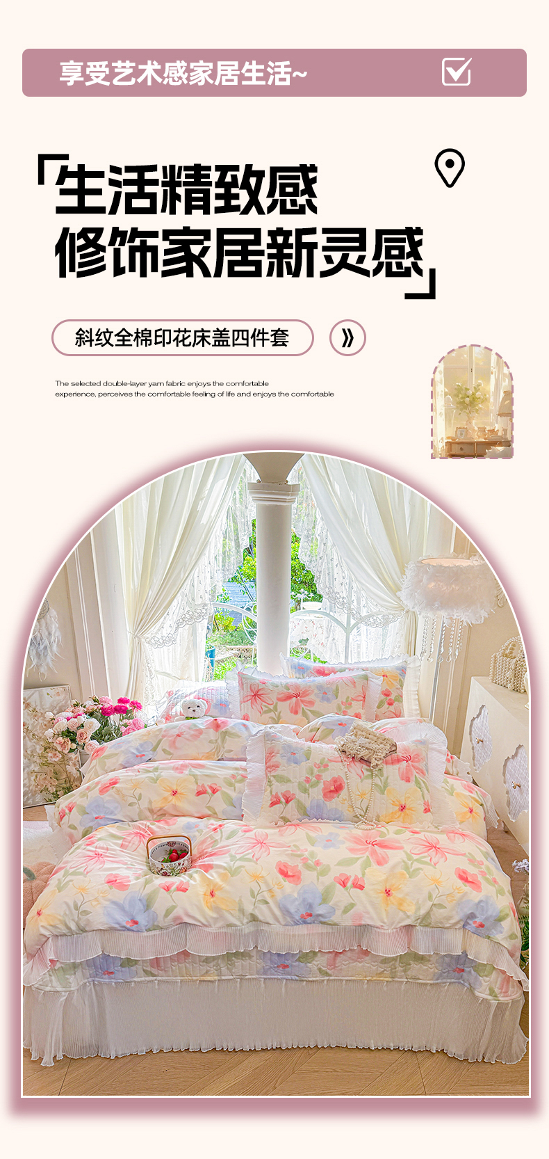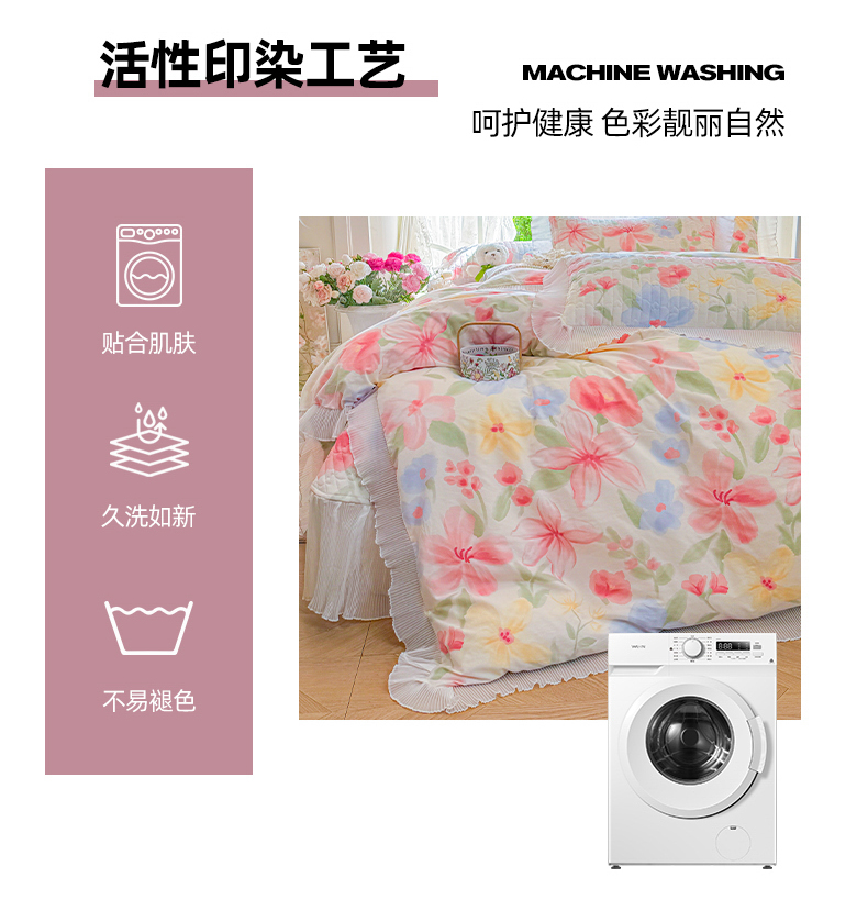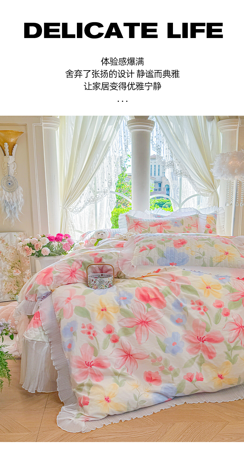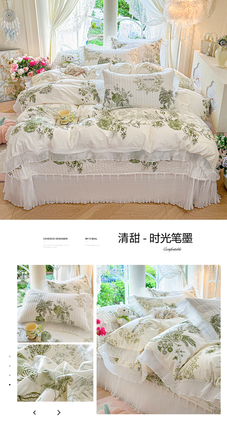 商品名称:虹星家纺 2025新款斜纹全棉纯棉印花床盖四件套-清甜 清甜-婉如初见