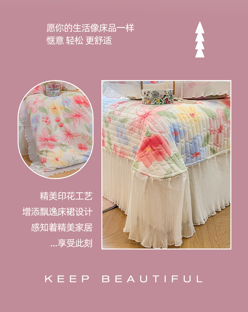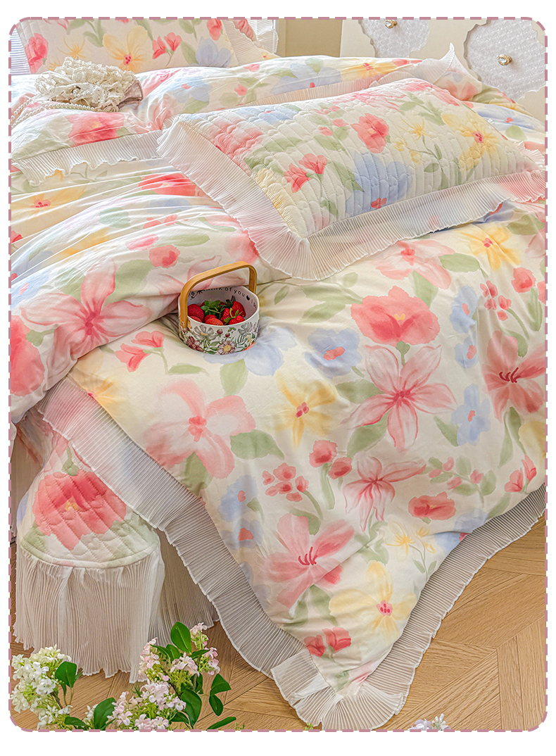 虹星家纺 2025新款斜纹全棉纯棉印花床盖四件套-清甜 清甜-婉如初见