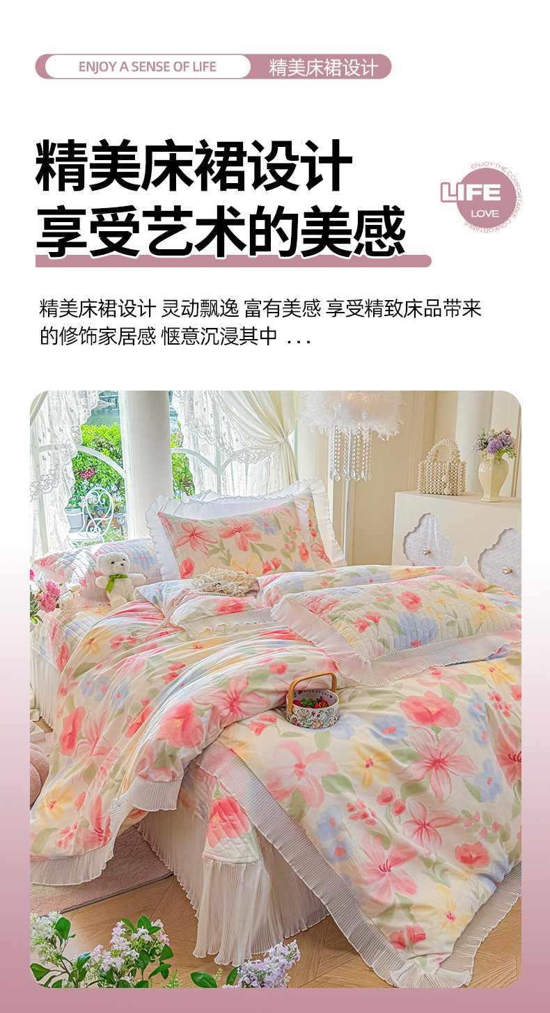 (总)虹星家纺 2025新款花边牛奶绒床裙三件套系列,蝶恋-粉玉,蝶恋-抹茶绿,蝶恋-奶茶色,蝶恋-葡萄紫,蝶恋-天空蓝
