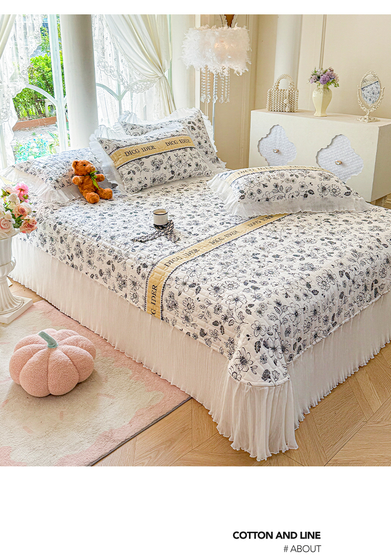 商品名称:虹星家纺 2025新款斜纹全棉纯棉印花床盖-清甜 清甜-挚爱