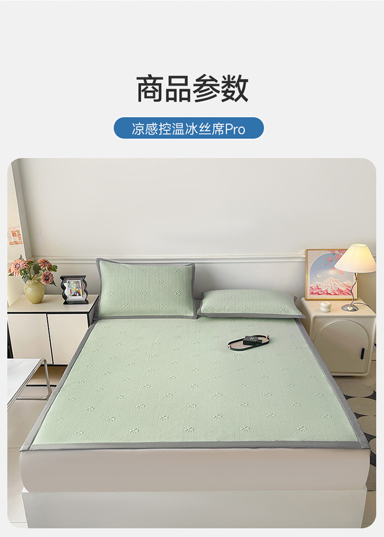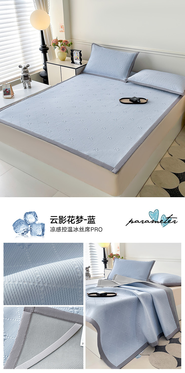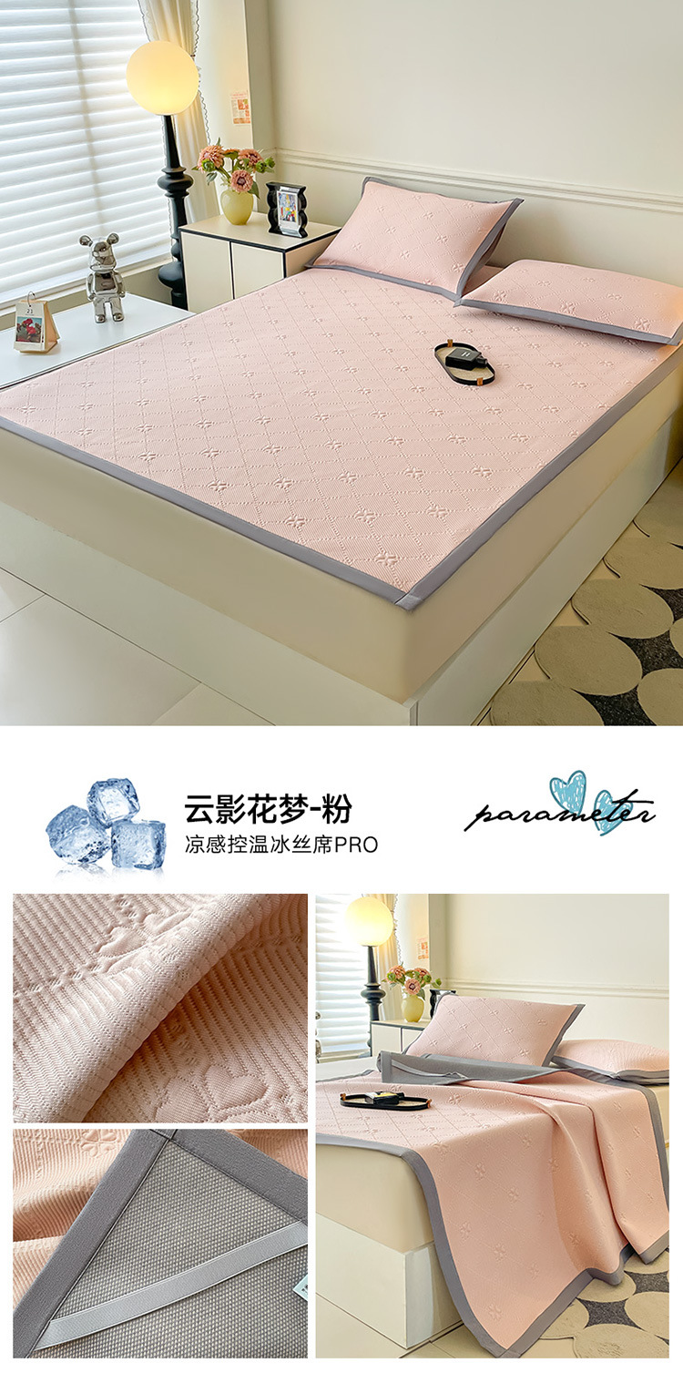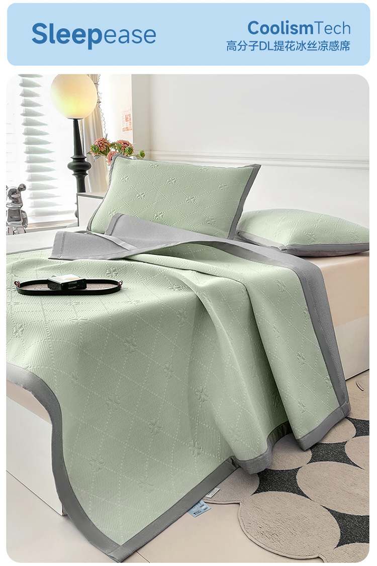 商品名称:良品汇馆 2025春夏新款日式无印冰丝提花凉席良品A类夏冰丝席子床单席纯色三件套乙纶 云影花梦-绿