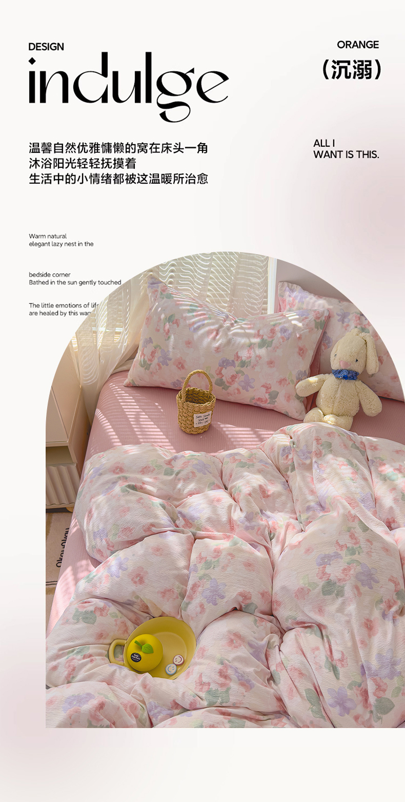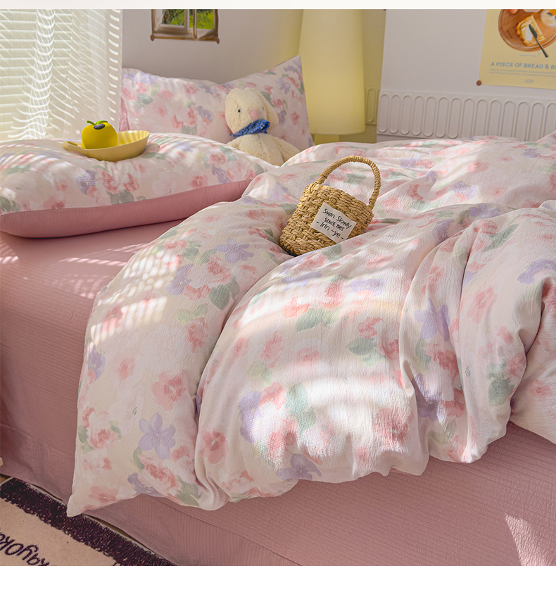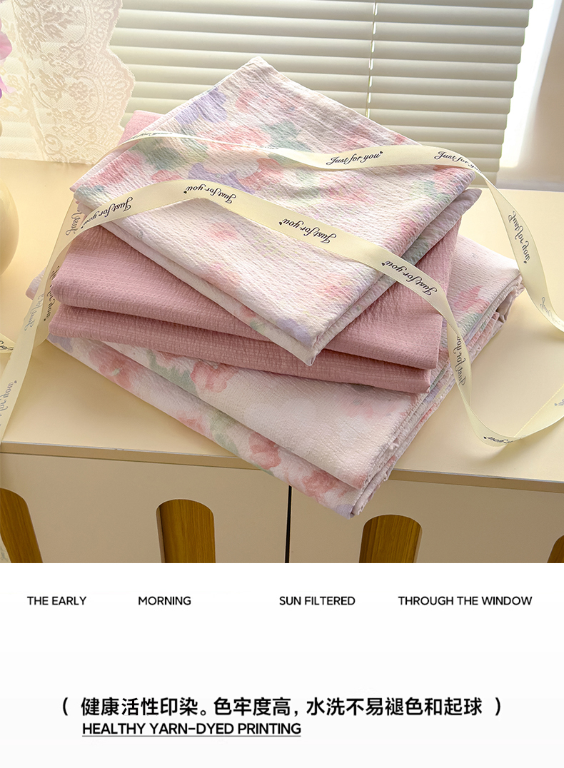 竹合家纺 2025新品云感皱皱四件套跑量款小清新四件套 组合图仅供展示