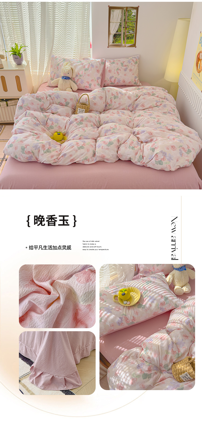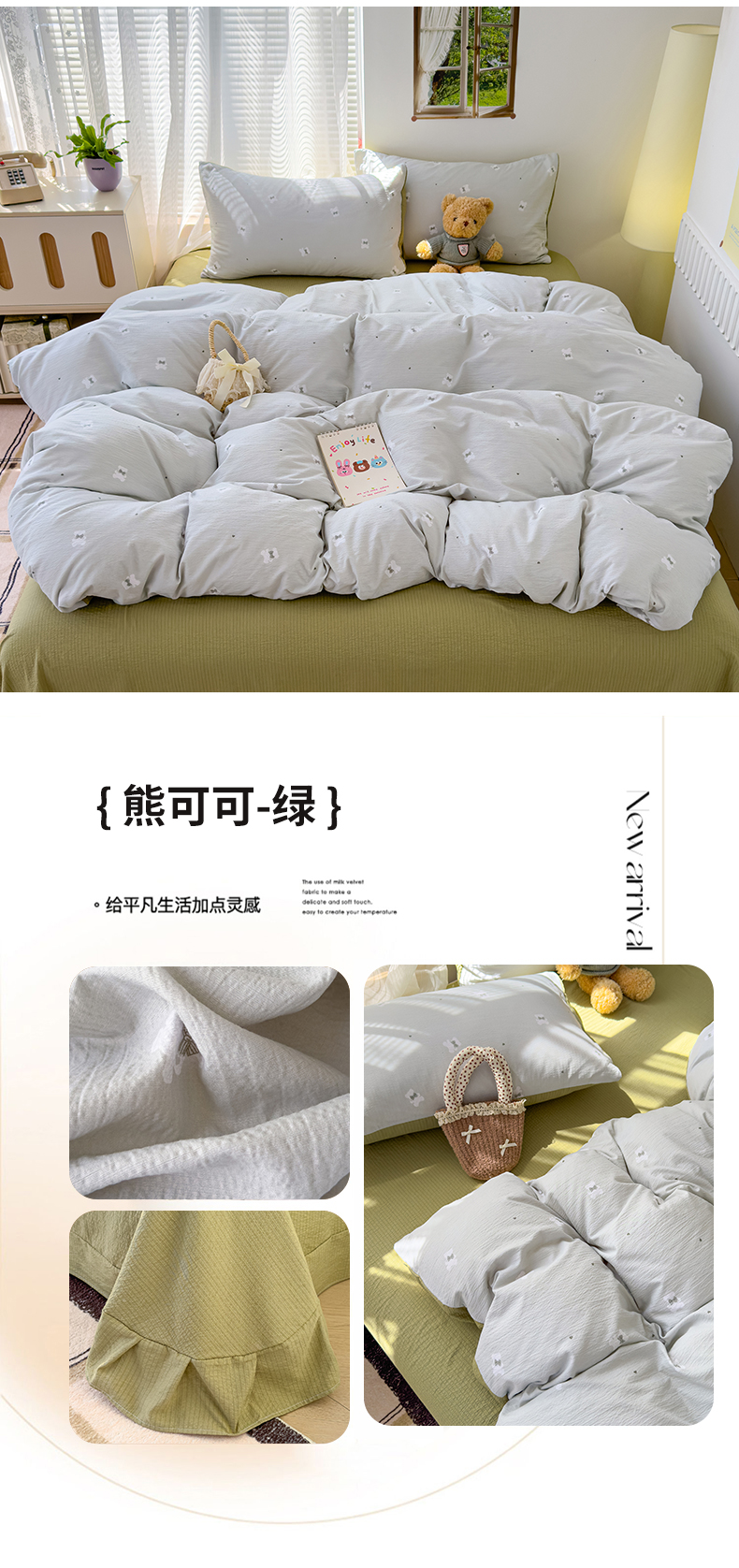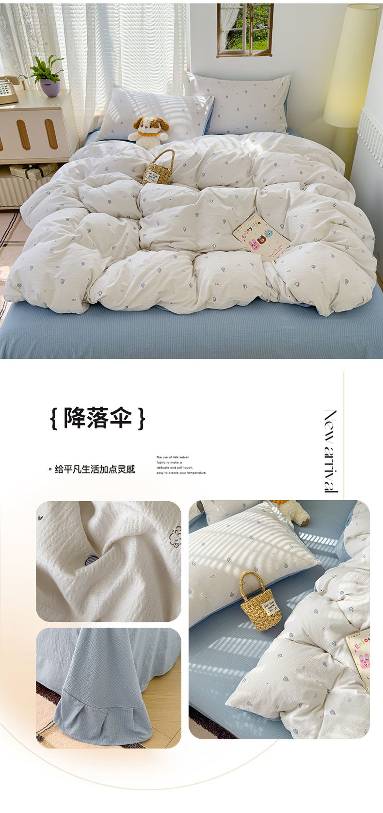 竹合家纺 2025新品云感皱皱四件套跑量款小清新四件套 组合图仅供展示