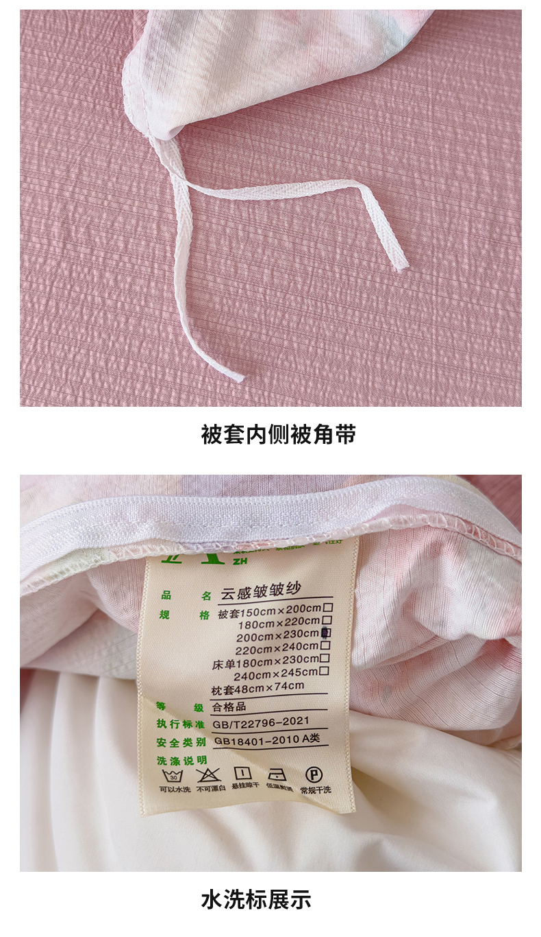 商品名称:竹合家纺 2025新品云感皱皱四件套跑量款小清新四件套 组合图仅供展示