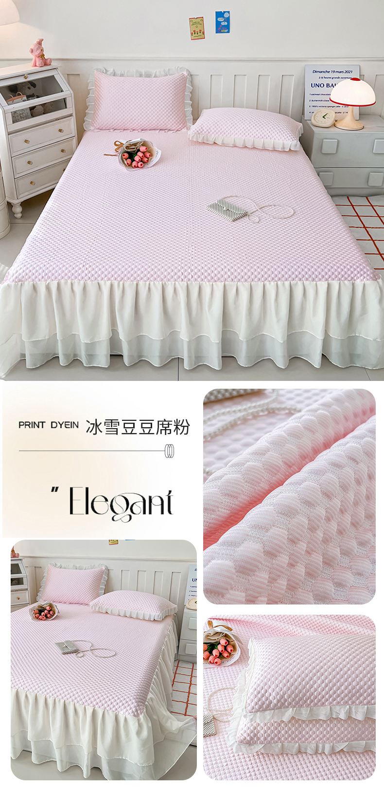 857家居 2025新款冰雪凉豆豆床裙凉席三件套 冰雪豆豆席粉