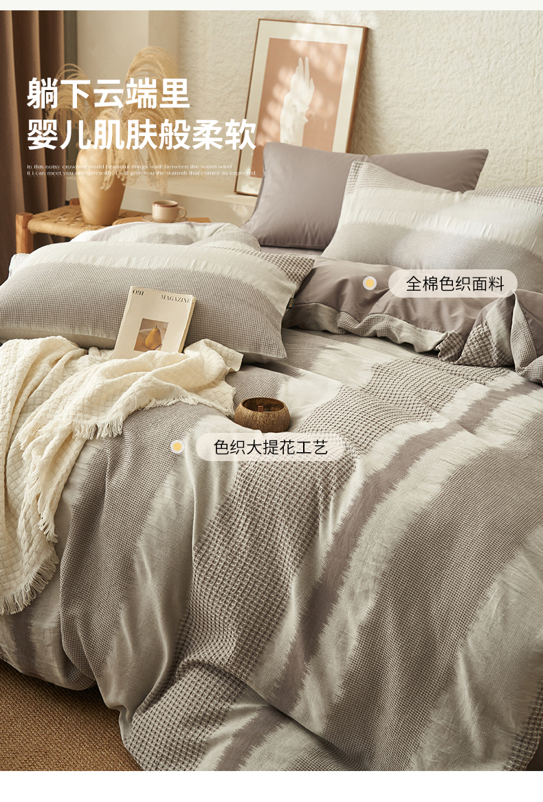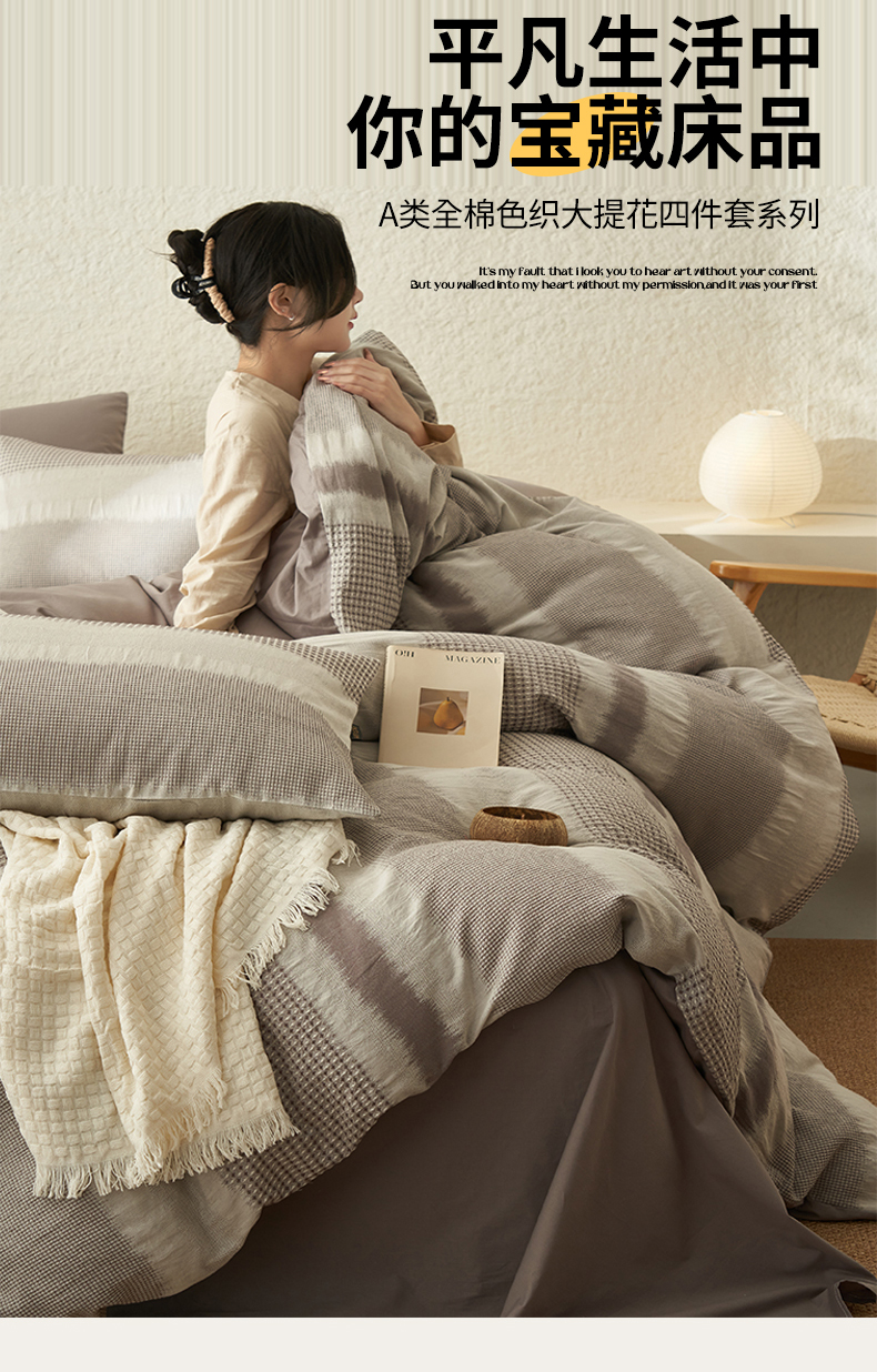 当前位置: 91家纺网 > 商品网购 > 床品套件 > 四件套 > 全棉普通四件套 > 趣色家纺2025新款高密织色织大提花全棉四件套 洛川-灰