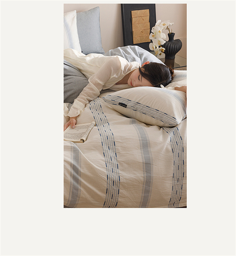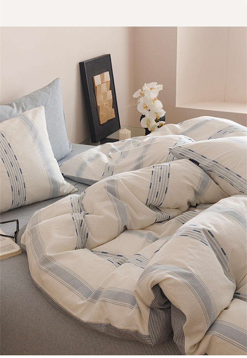 当前位置: 91家纺网 > 商品网购 > 床品套件 > 四件套 > 全棉普通四件套 > 趣色家纺2025新款高密织色织大提花全棉四件套 忆生活-蓝