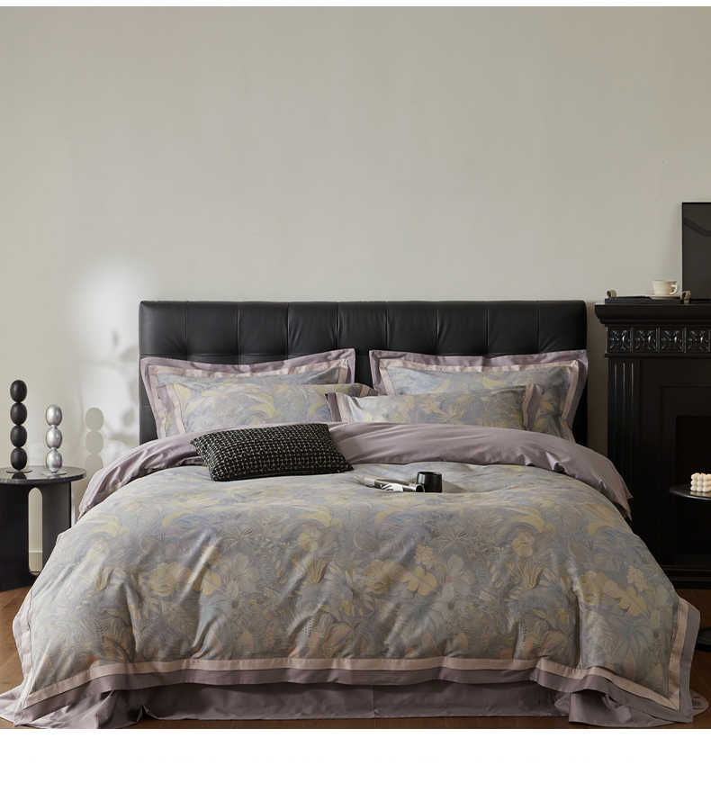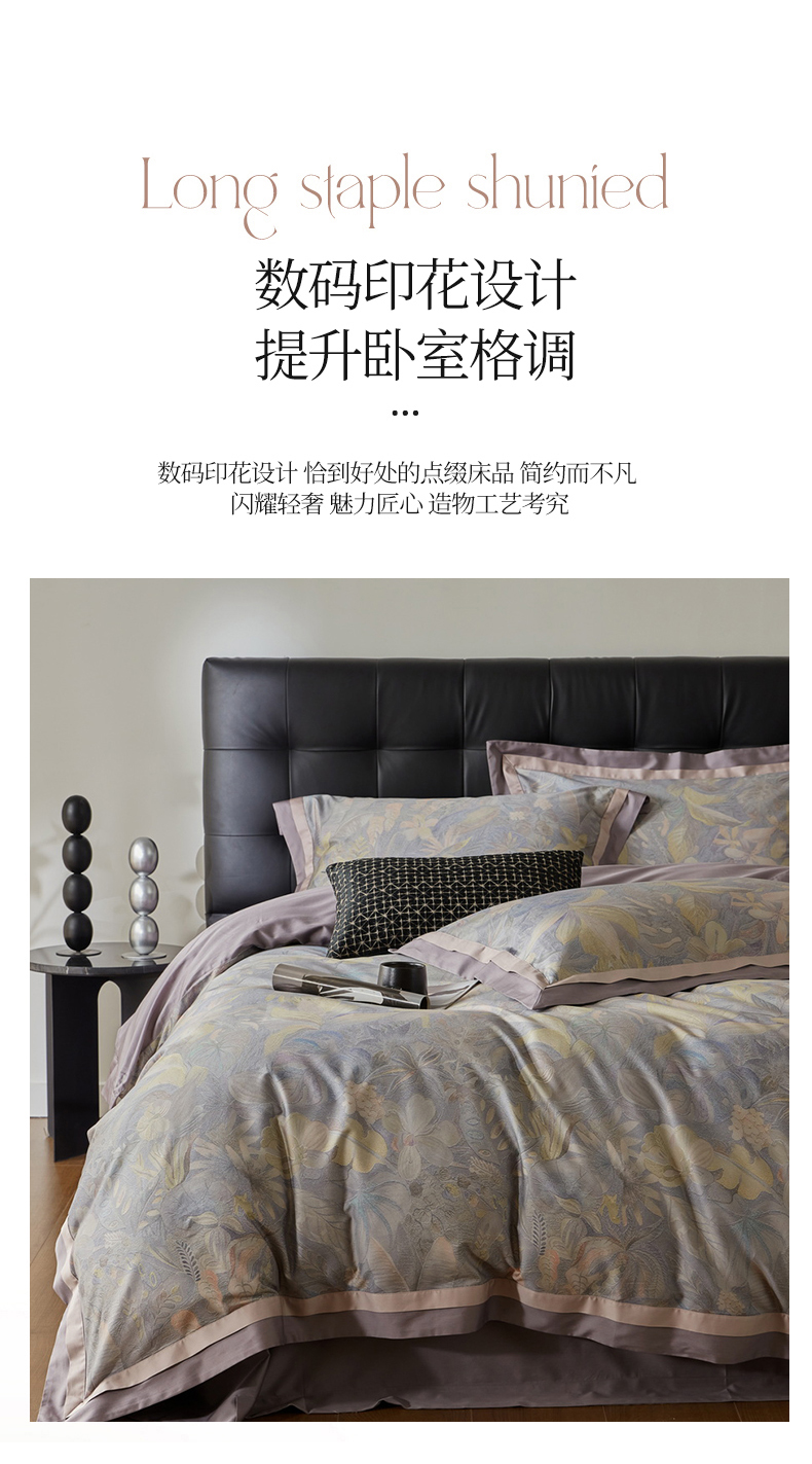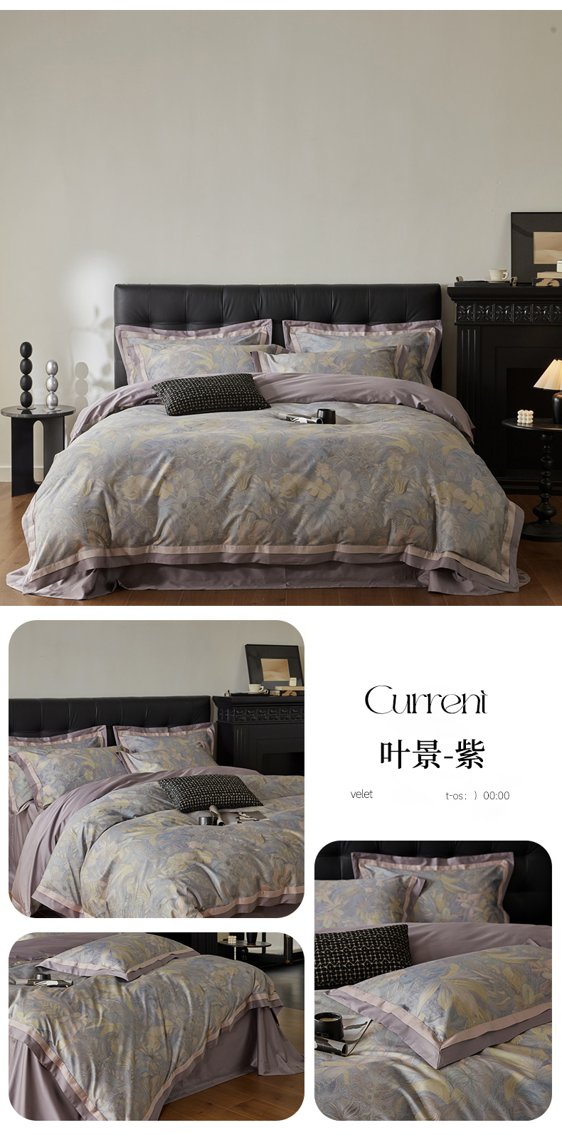 (总)由丽家纺 2025新款数码印花双层边拼角活性数码印花四件套(控价券后399起),浮世-粉,浮世-灰,浮世-紫,叶景-粉,叶景-紫