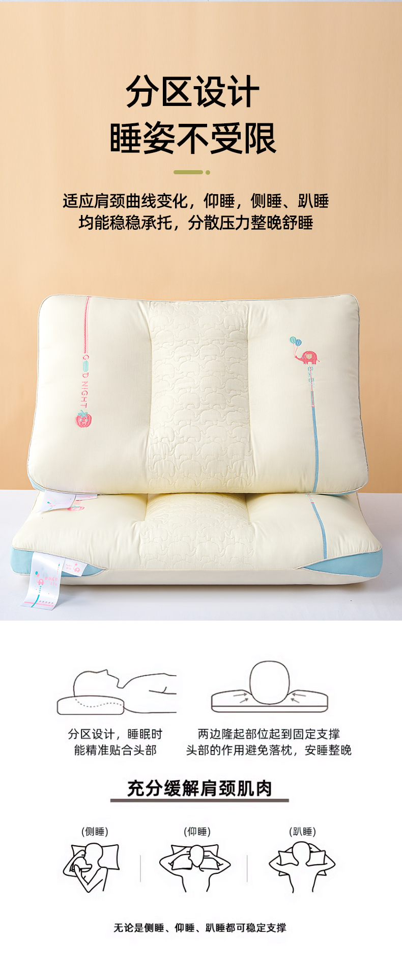 当前位置: 91家纺网 > 商品网购 > 枕头/枕芯/保健枕/颈椎枕 > 普通枕芯 > 芯宜佳 2025春夏新款小萌象亲子枕枕头枕芯单枕芯 小萌象亲子枕-学生枕 48x74cm/对