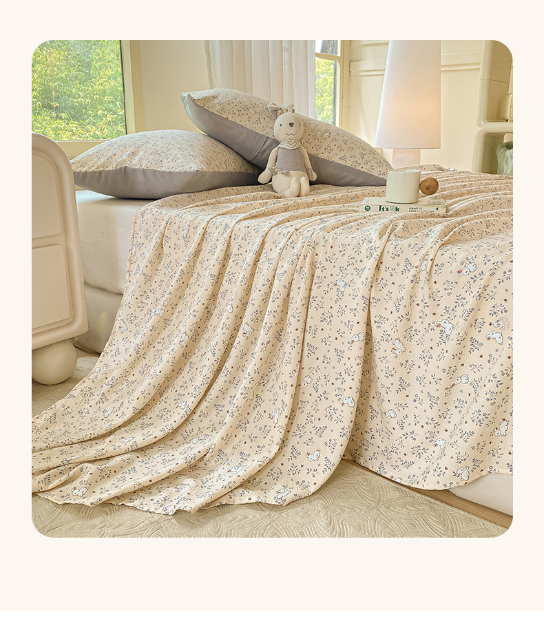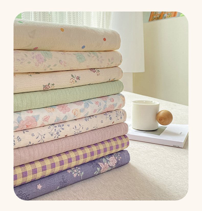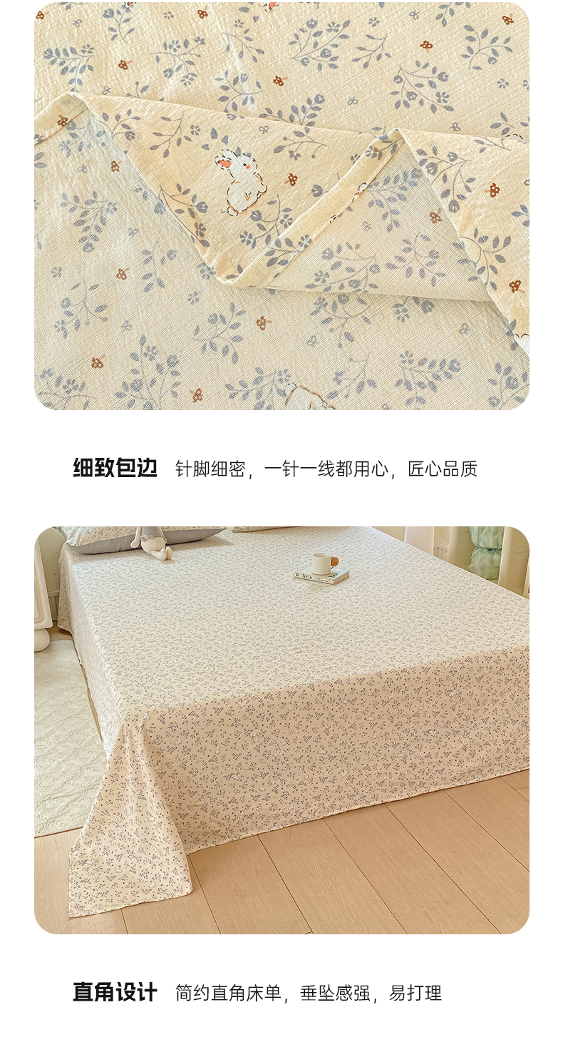 商品名称:梦初语 2025夏季直播爆款A类水洗棉皱皱纱双层纱床单学生宿舍三件套 花海-粉