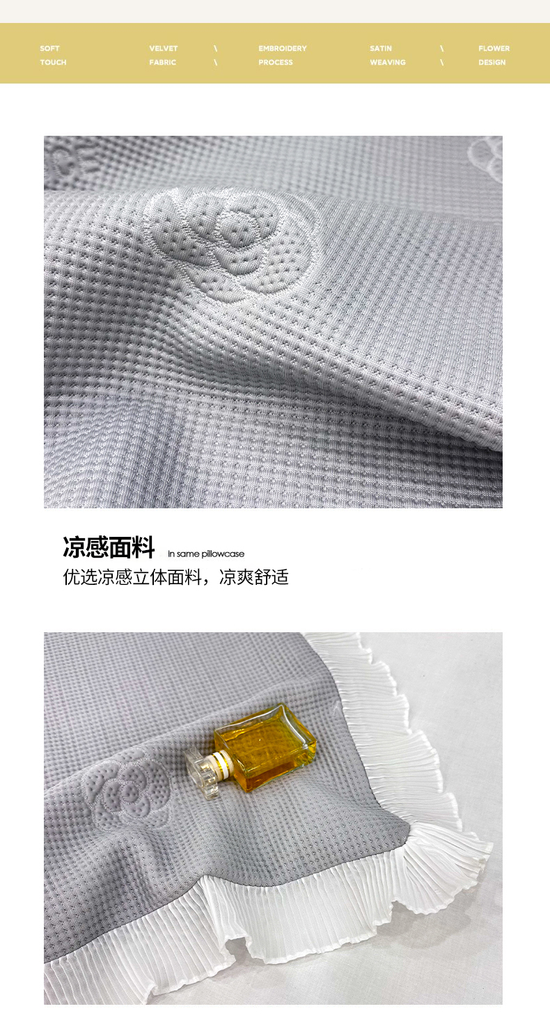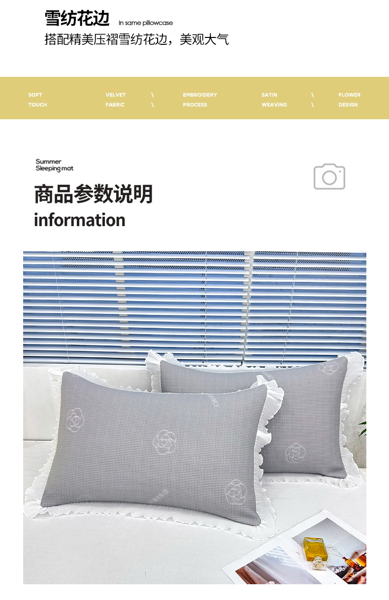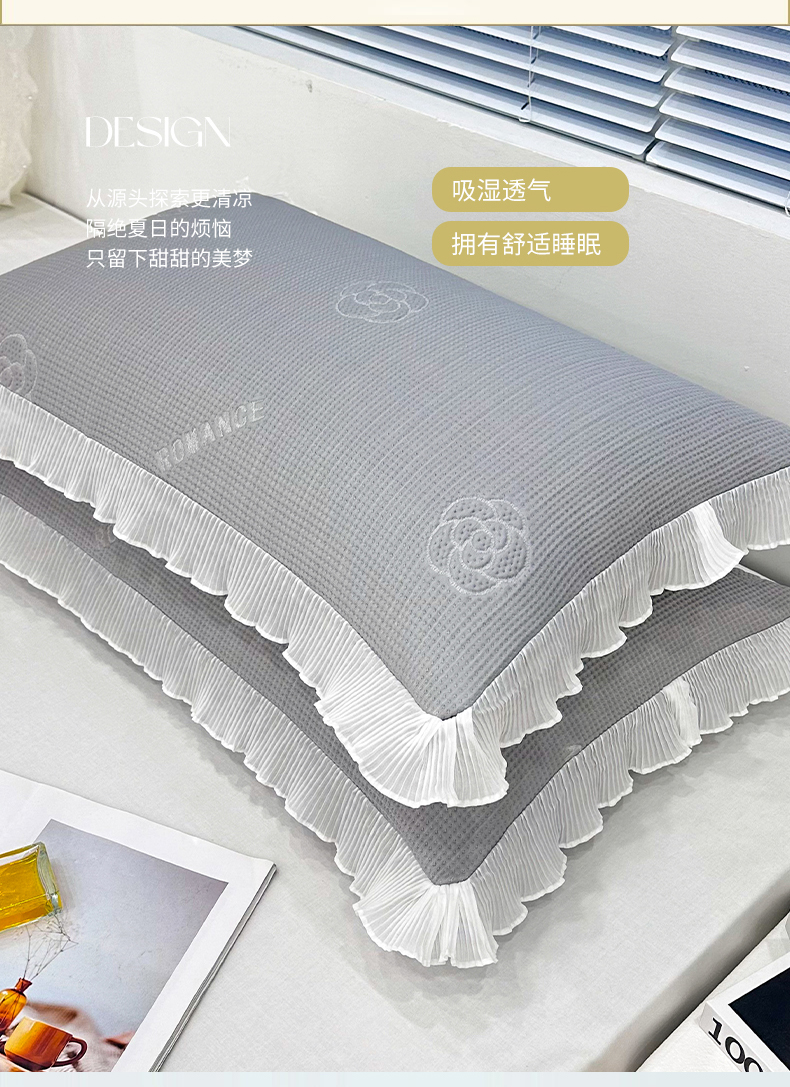 商品名称:芯宜佳 2025年新款冰豆豆花边单人枕套 山茶花-灰
