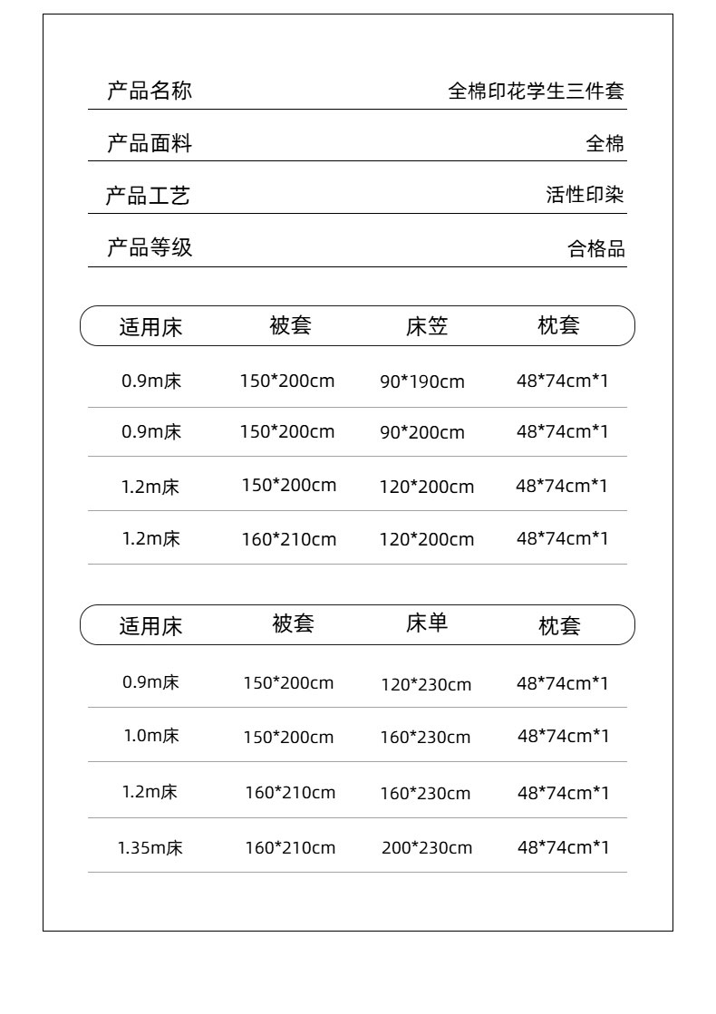 1.35床单三件套被套160*210 | ¥72.00 |