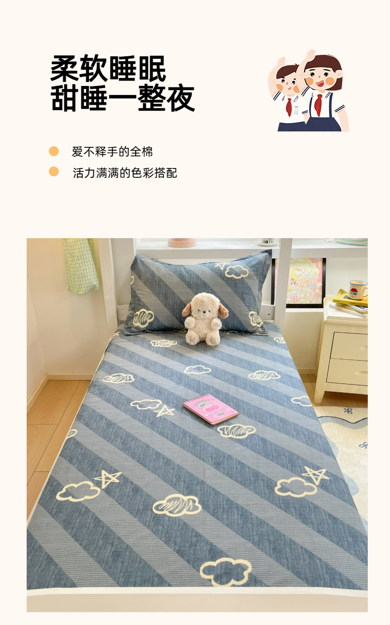 铭成家纺 2025新款全棉印花学生单床笠系列 云韵时空
