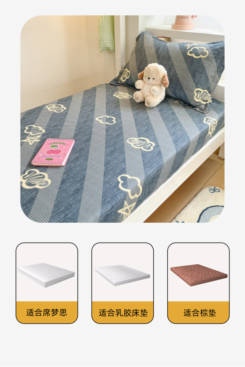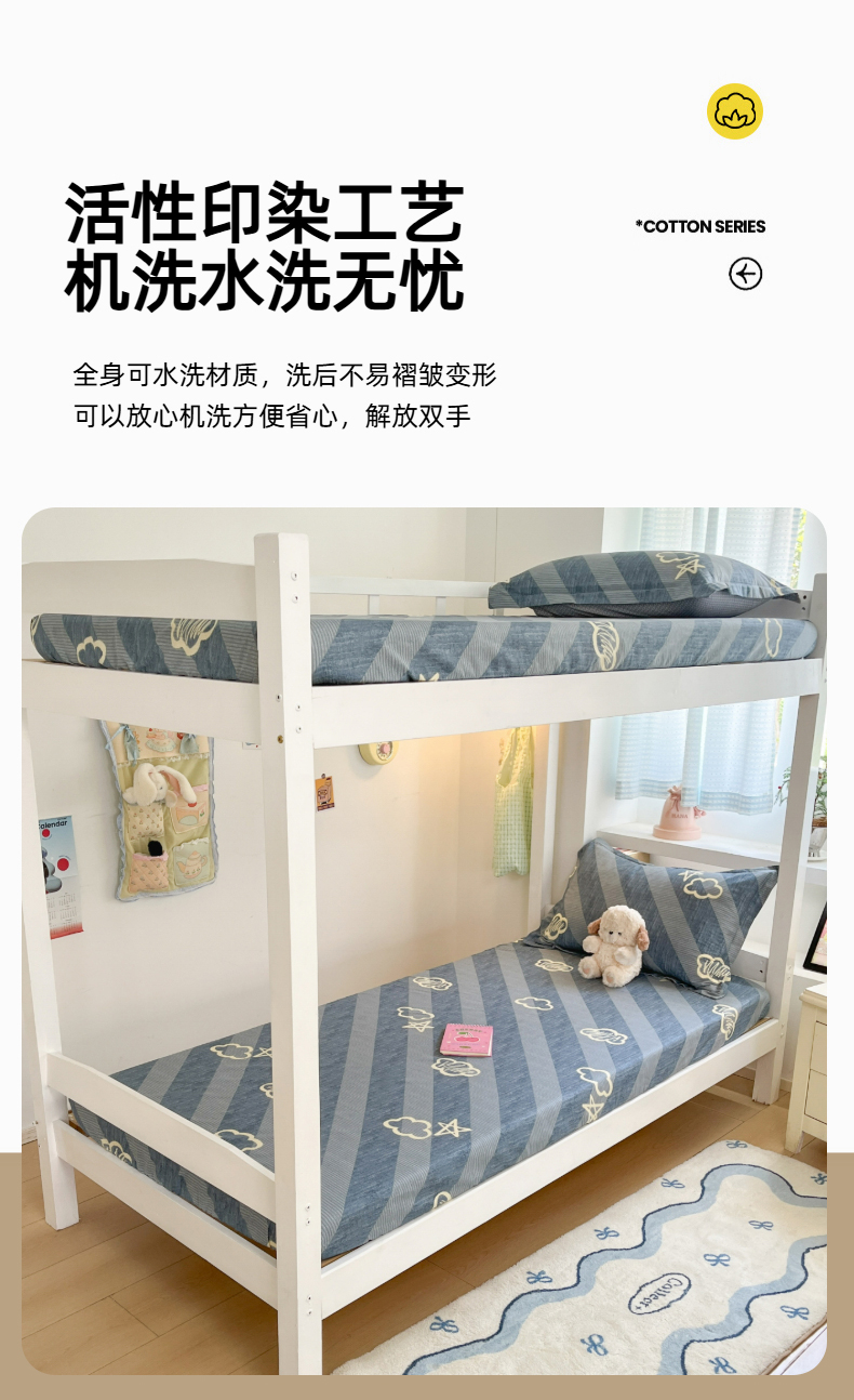 • 91家纺网 家纺一手货源 找家纺 铭成家纺 2025新款全棉印花学生单床笠系列 云韵时空