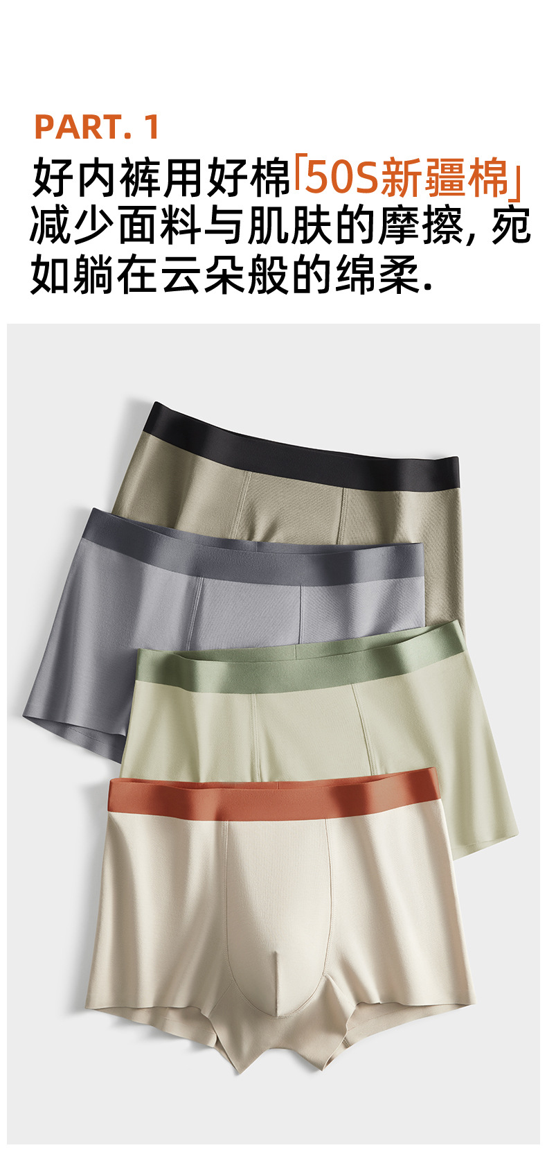 商品名称:良品汇馆 2025新款日式无印50支新疆长绒棉全棉纯棉男士内裤良品中腰无痕男平角内裤裤头 钼灰