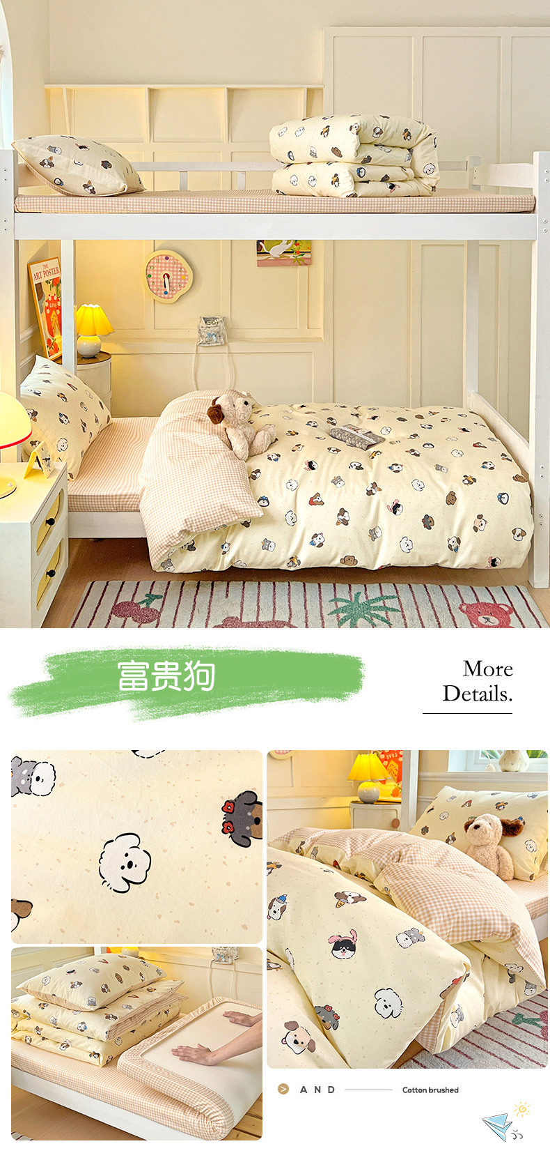 当前位置: 91家纺网 > 商品网购 > 床品套件 > 四件套 > 全棉普通四件套 > 西引力 2025新款全棉印花学生宿舍三件套四件套 富贵狗