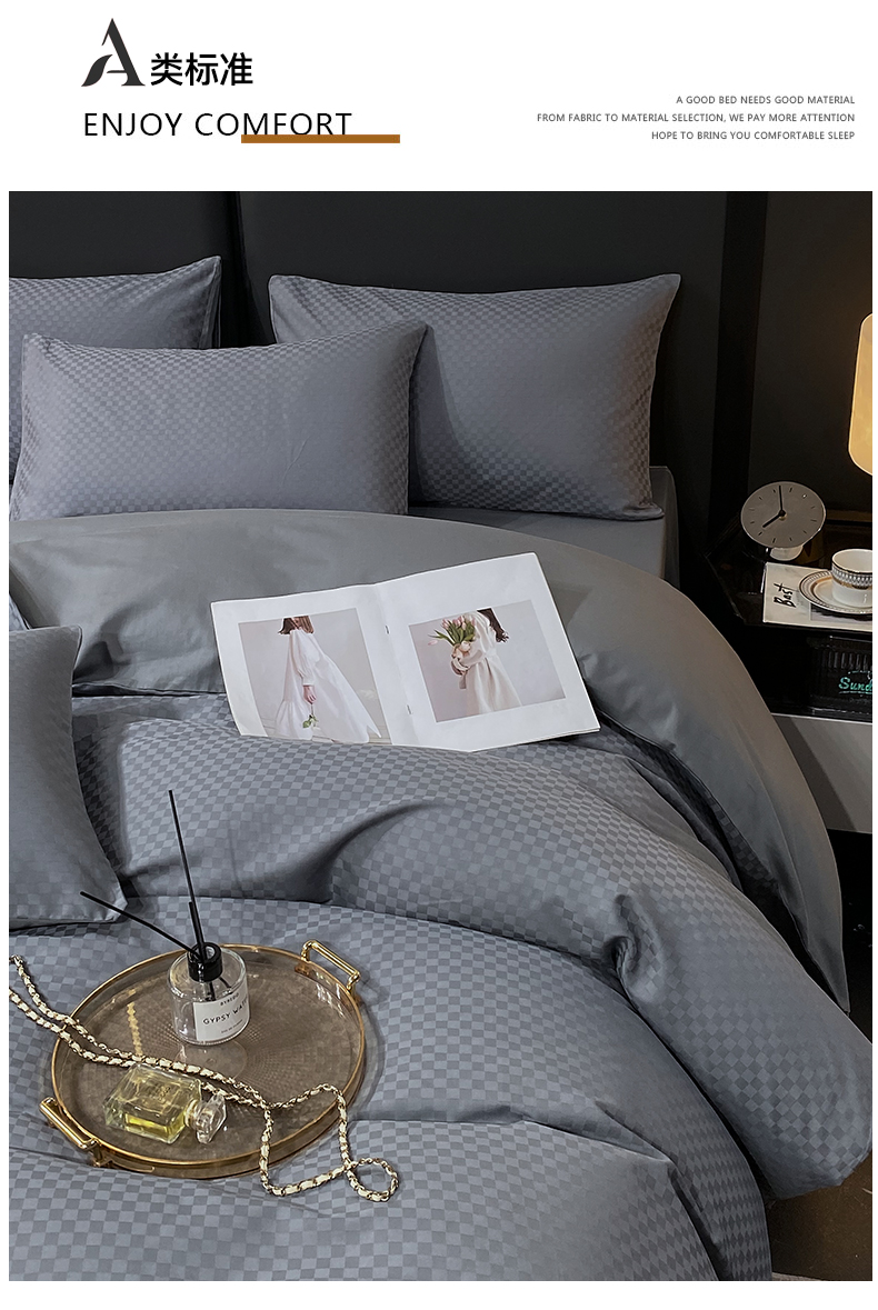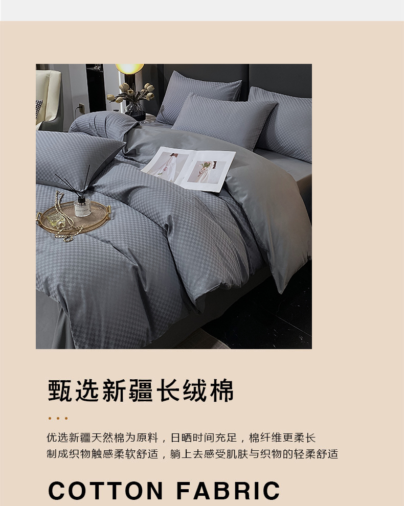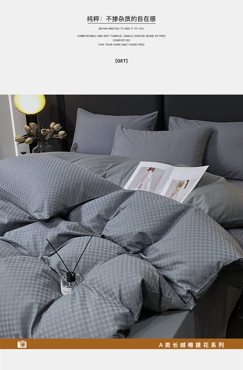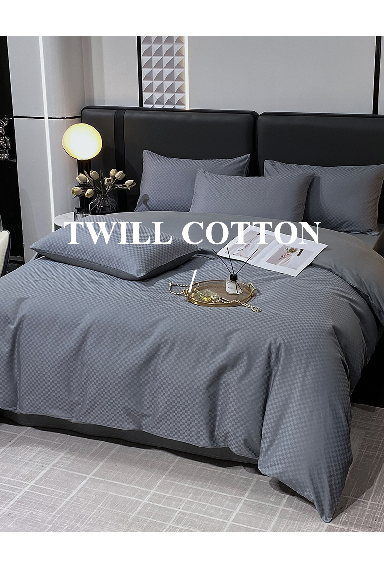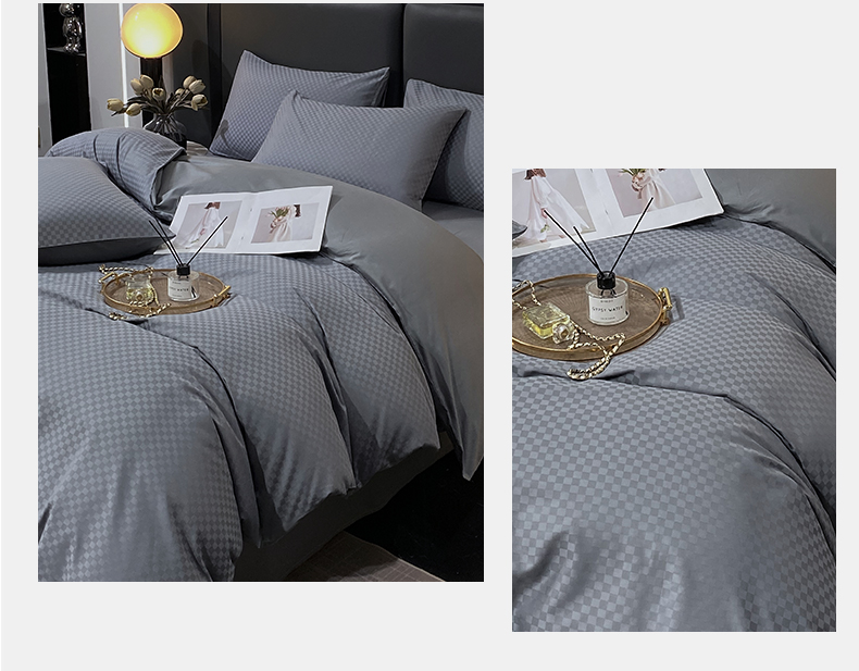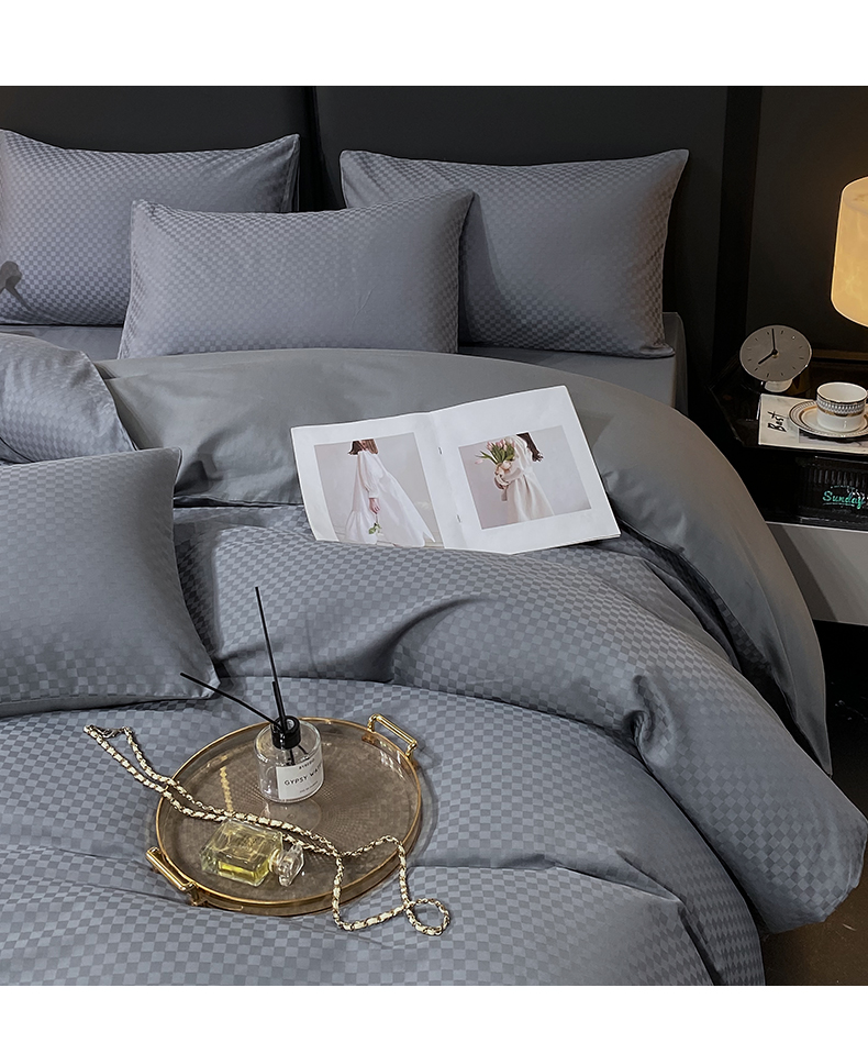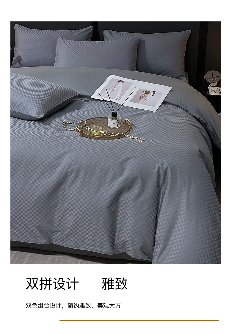 当前位置: 91家纺网 > 商品网购 > 床品套件 > 四件套 > 长绒棉四件套 > 金鑫汇家纺 2025新款长绒棉提花小方格系列四件套单品系列-四件套 深灰(新拍)
