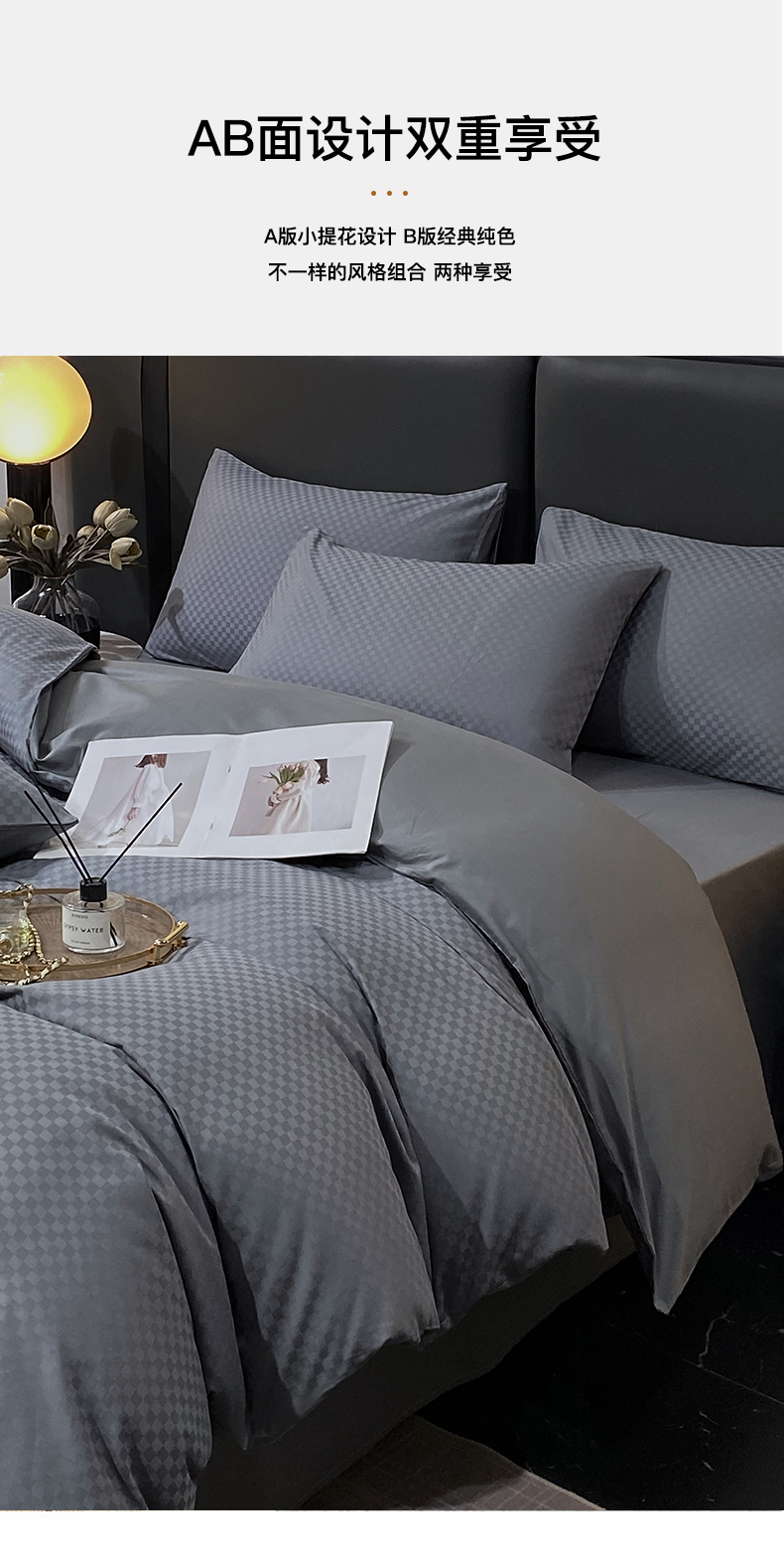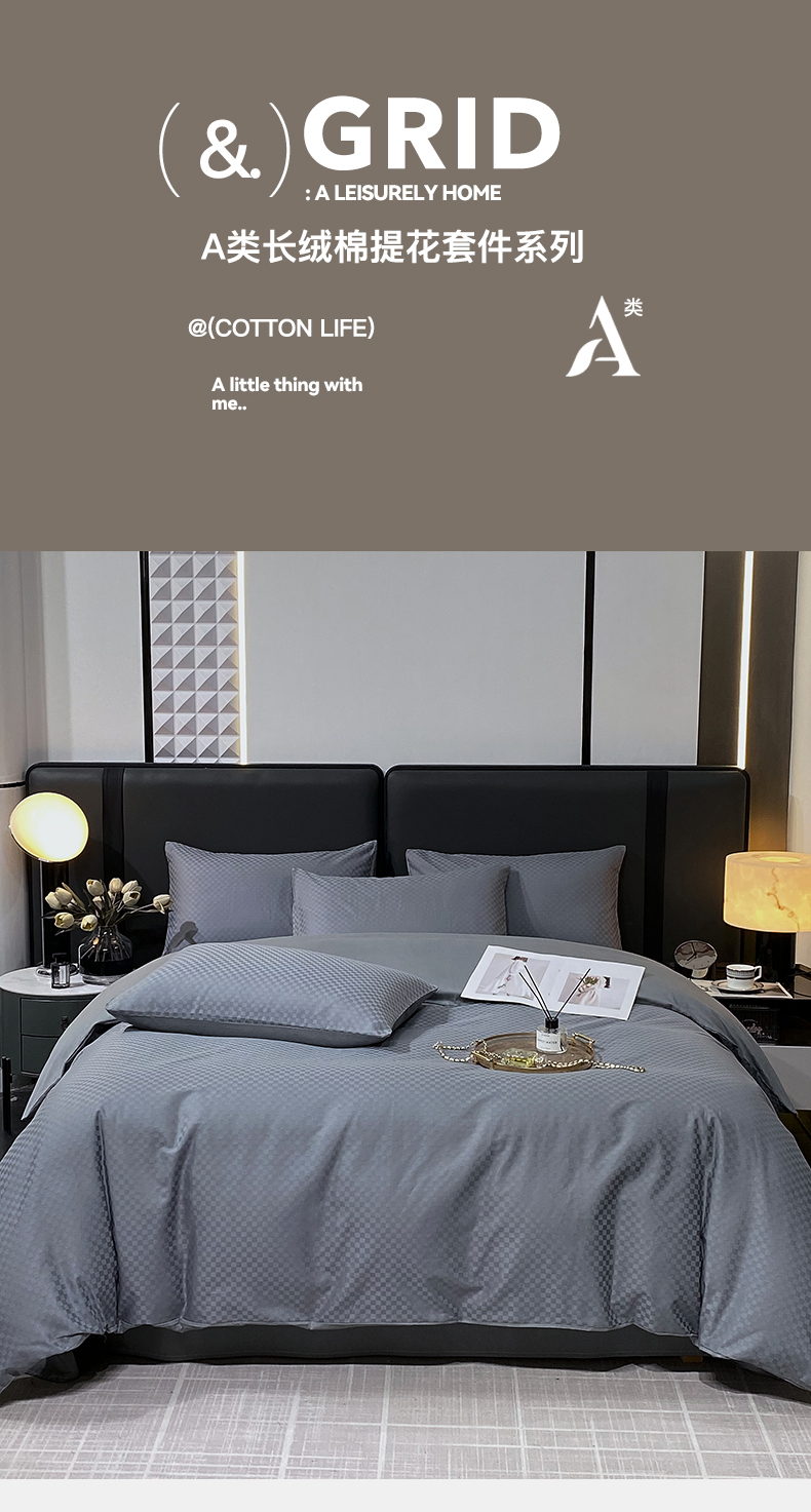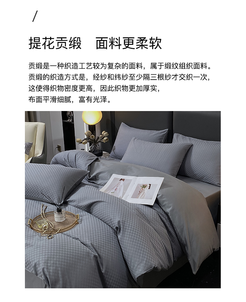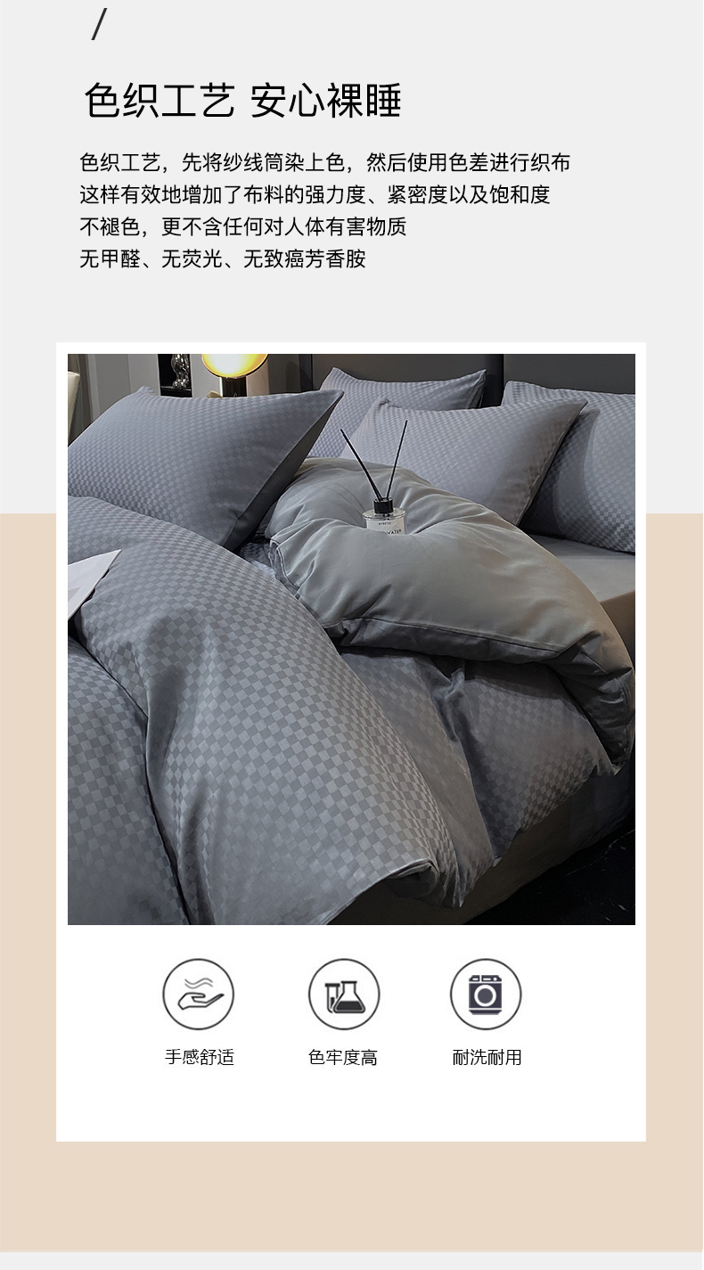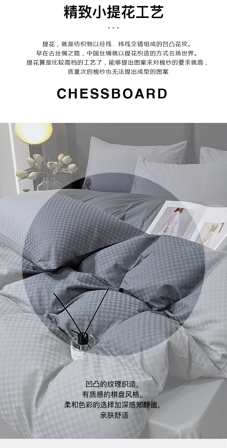 当前位置: 91家纺网 > 商品网购 > 床品套件 > 四件套 > 长绒棉四件套 > 金鑫汇家纺 2025新款长绒棉提花小方格系列四件套单品系列-四件套 深灰(新拍)
