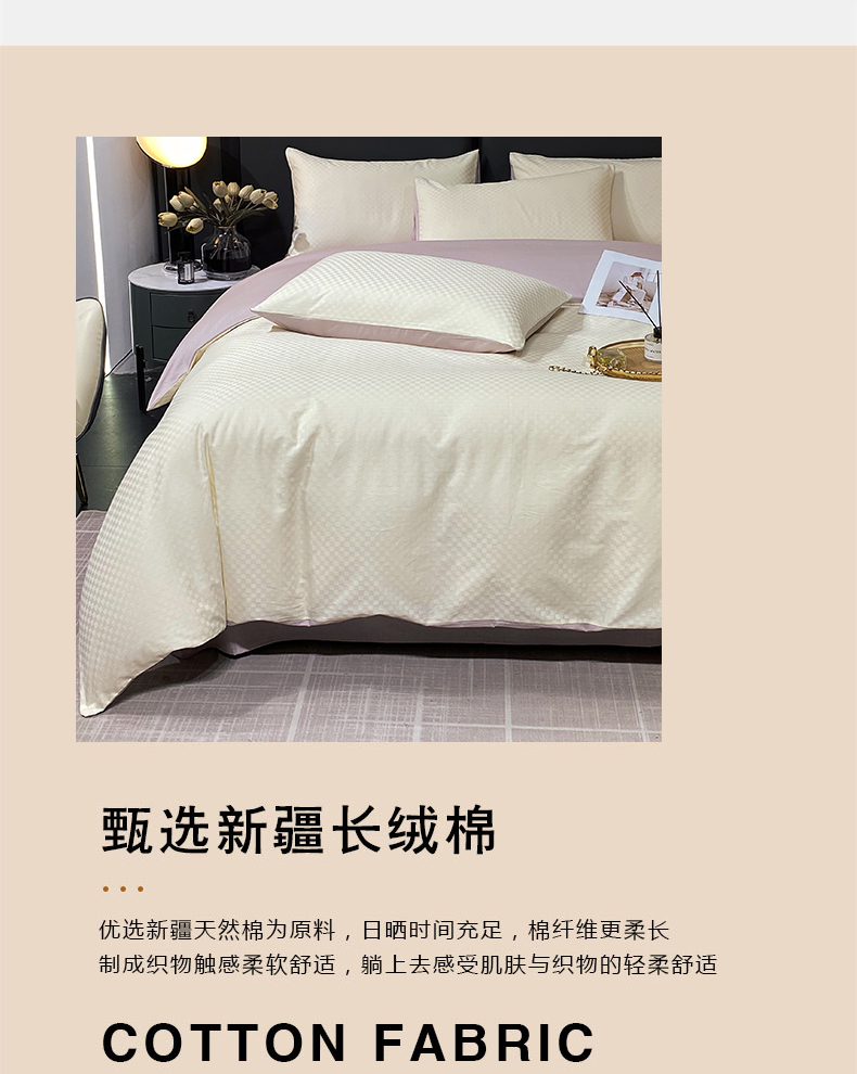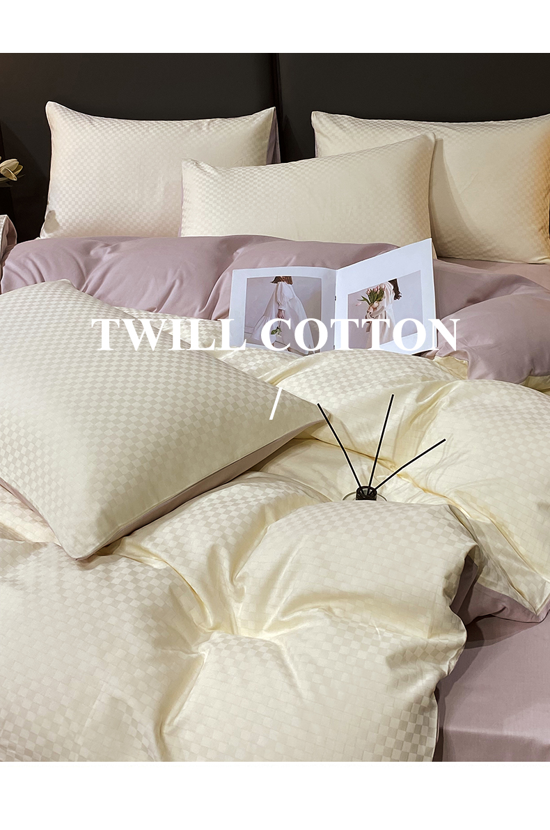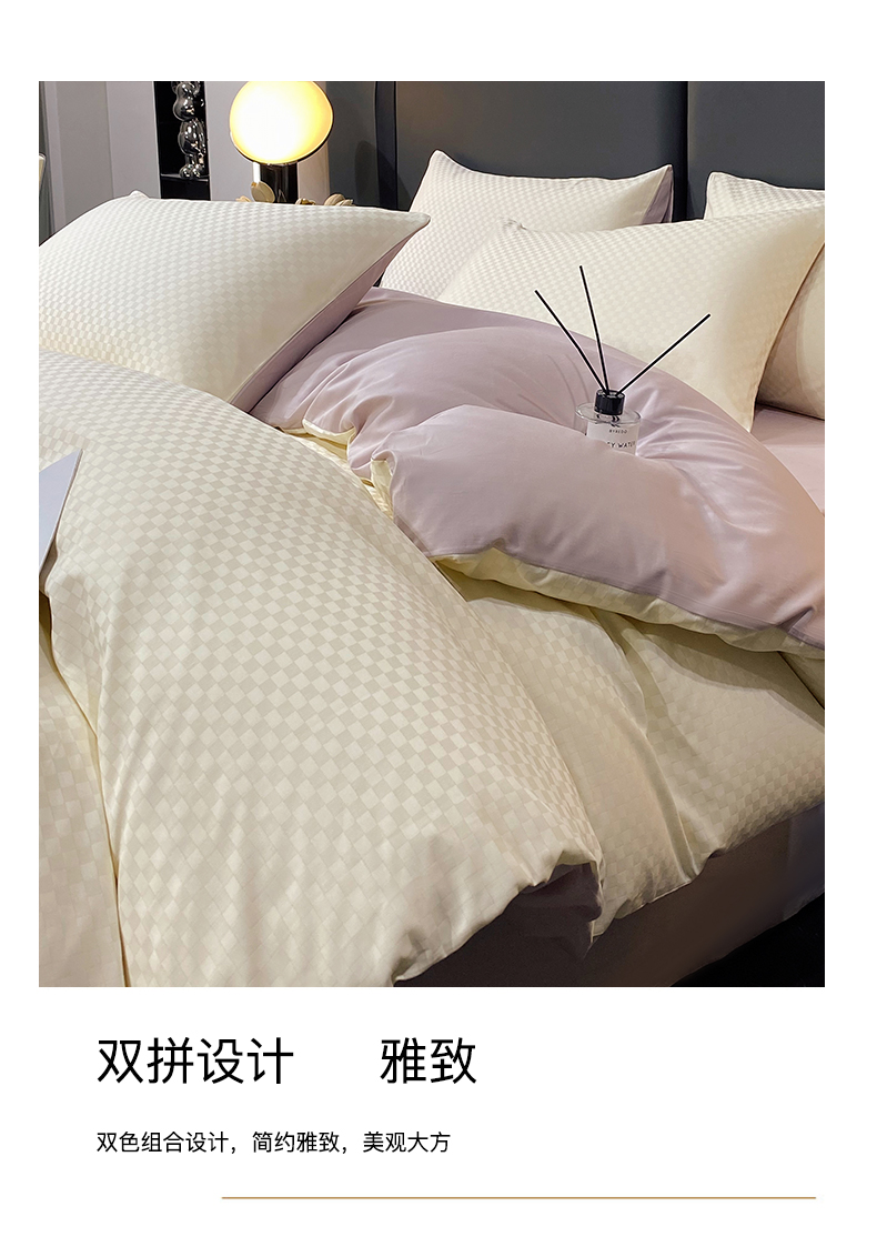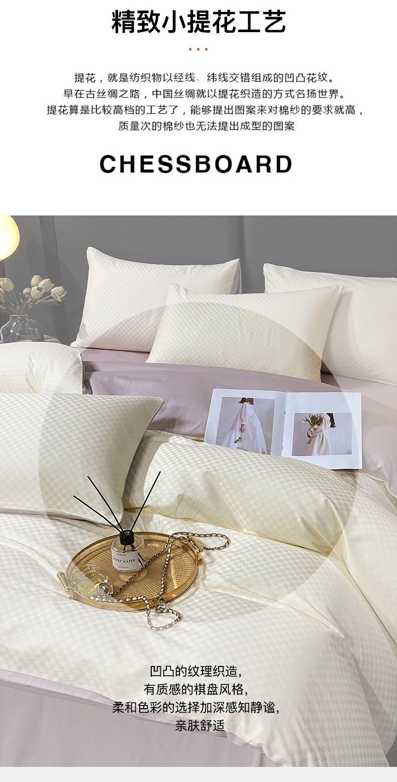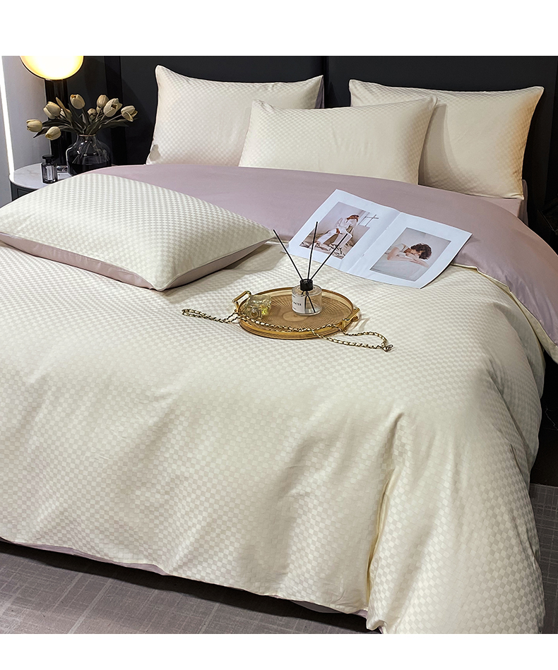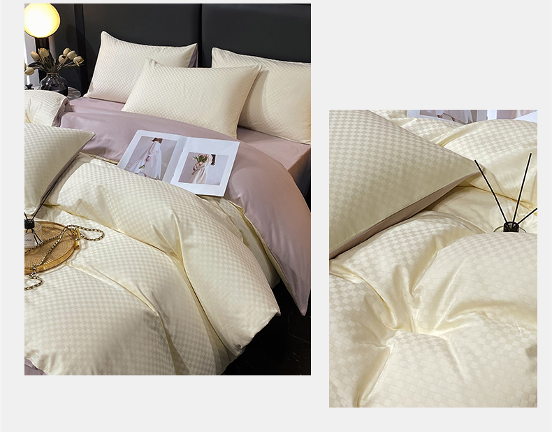 • 91家纺网 家纺一手货源 找家纺 金鑫汇家纺 2024新款长绒棉提花小方格系列四件套单品系列-单被套 奶昔白+淡紫(新拍)