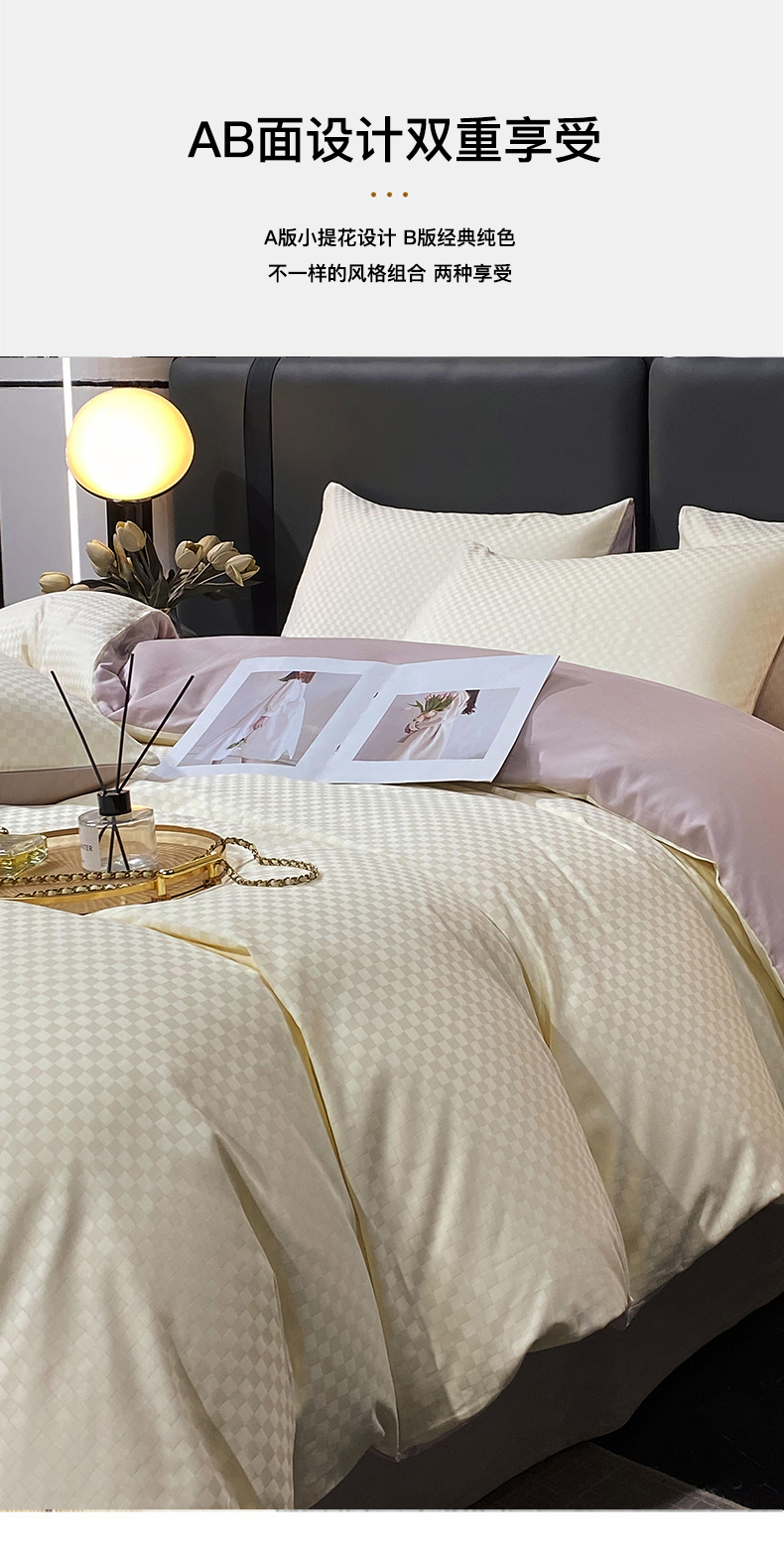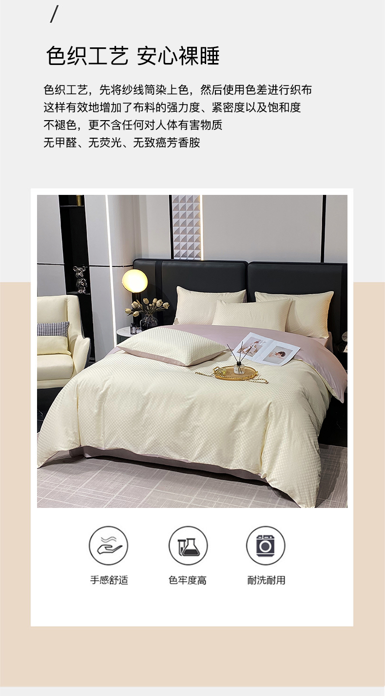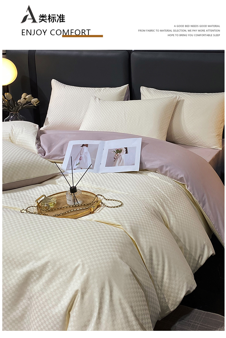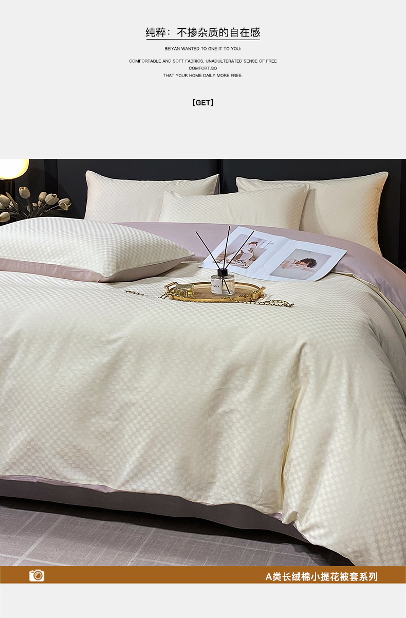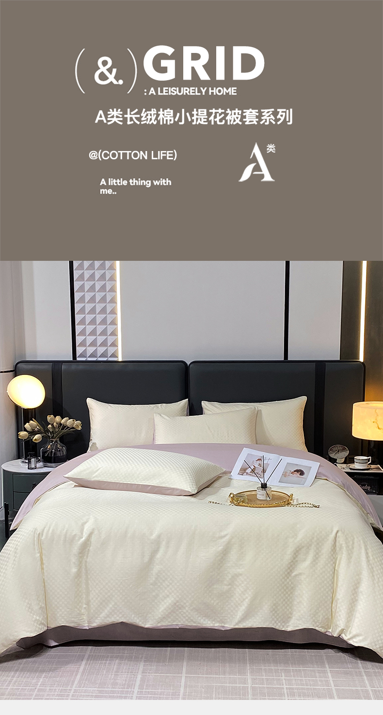 • 91家纺网 家纺一手货源 找家纺 金鑫汇家纺 2024新款长绒棉提花小方格系列四件套单品系列-单被套 奶昔白+淡紫(新拍)