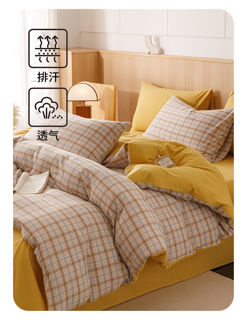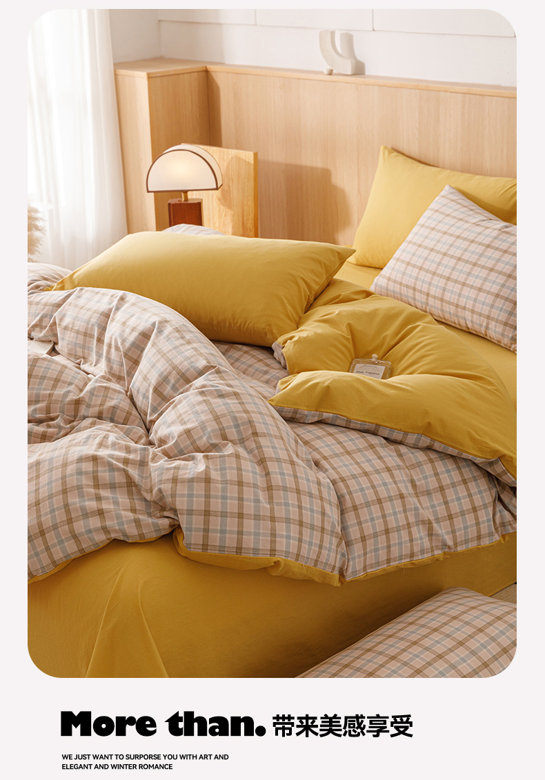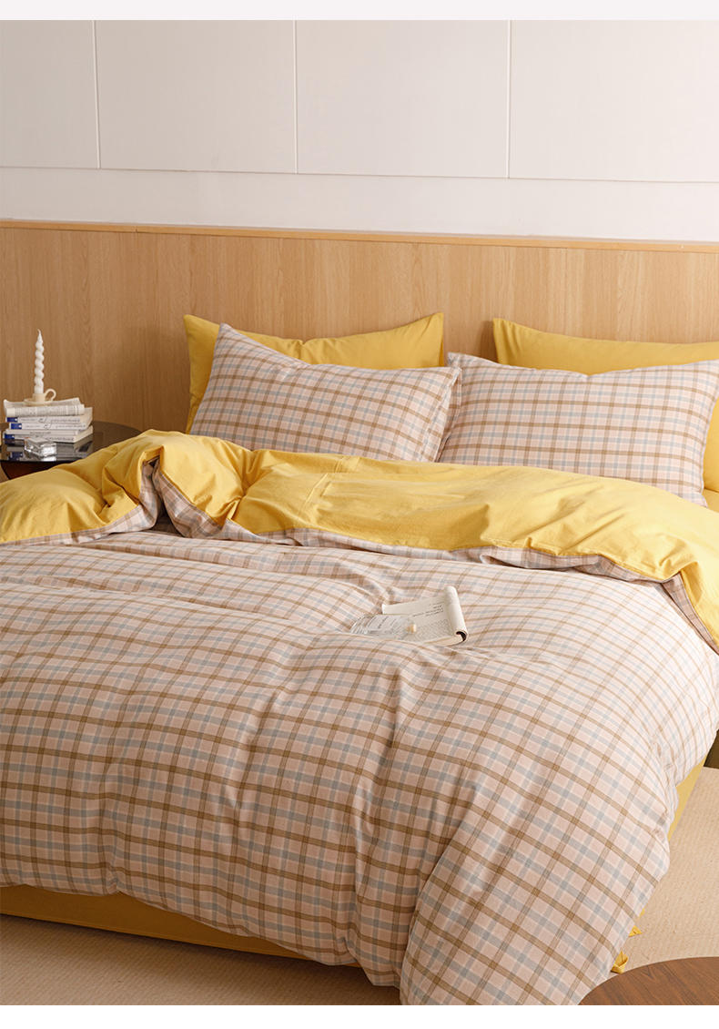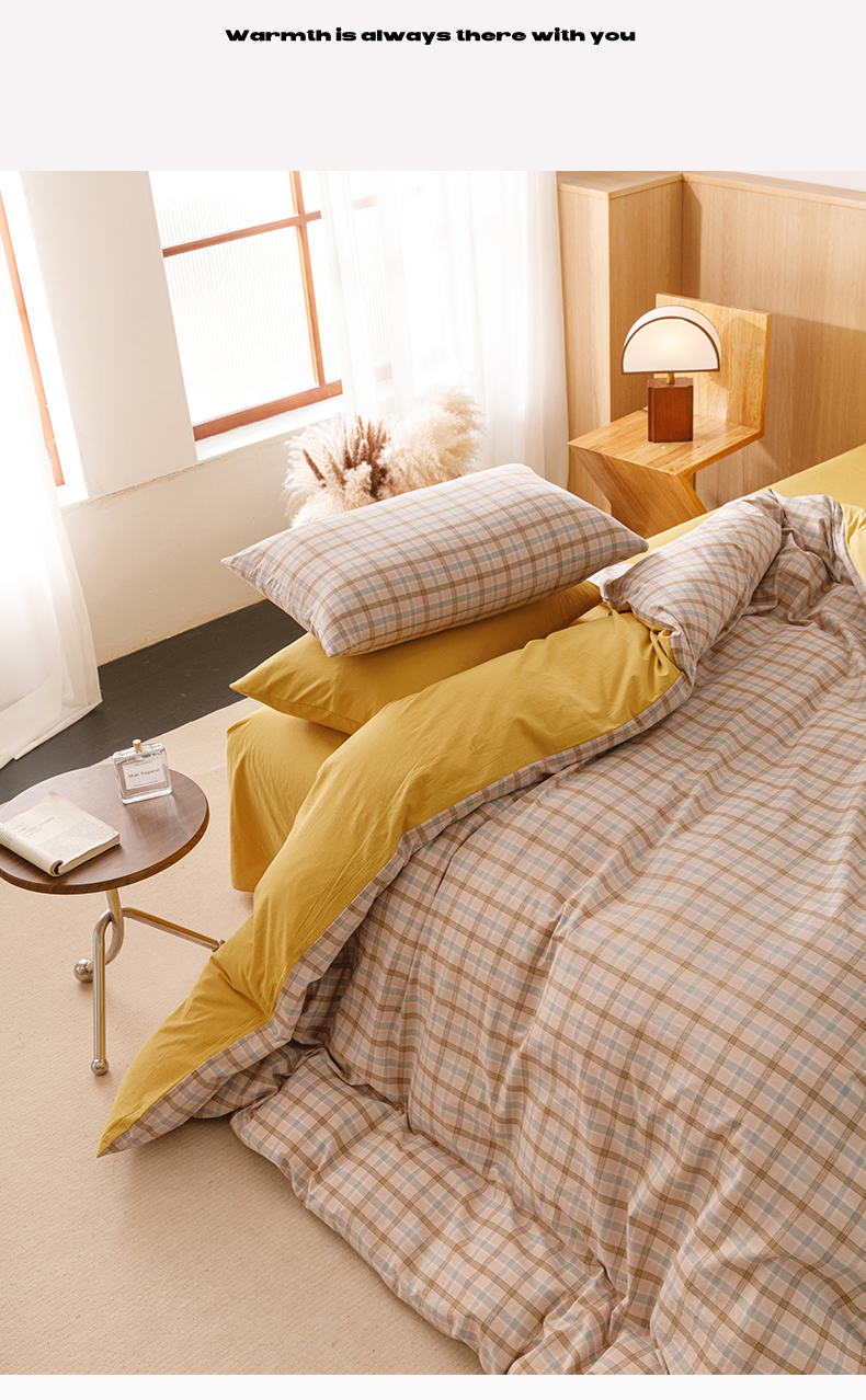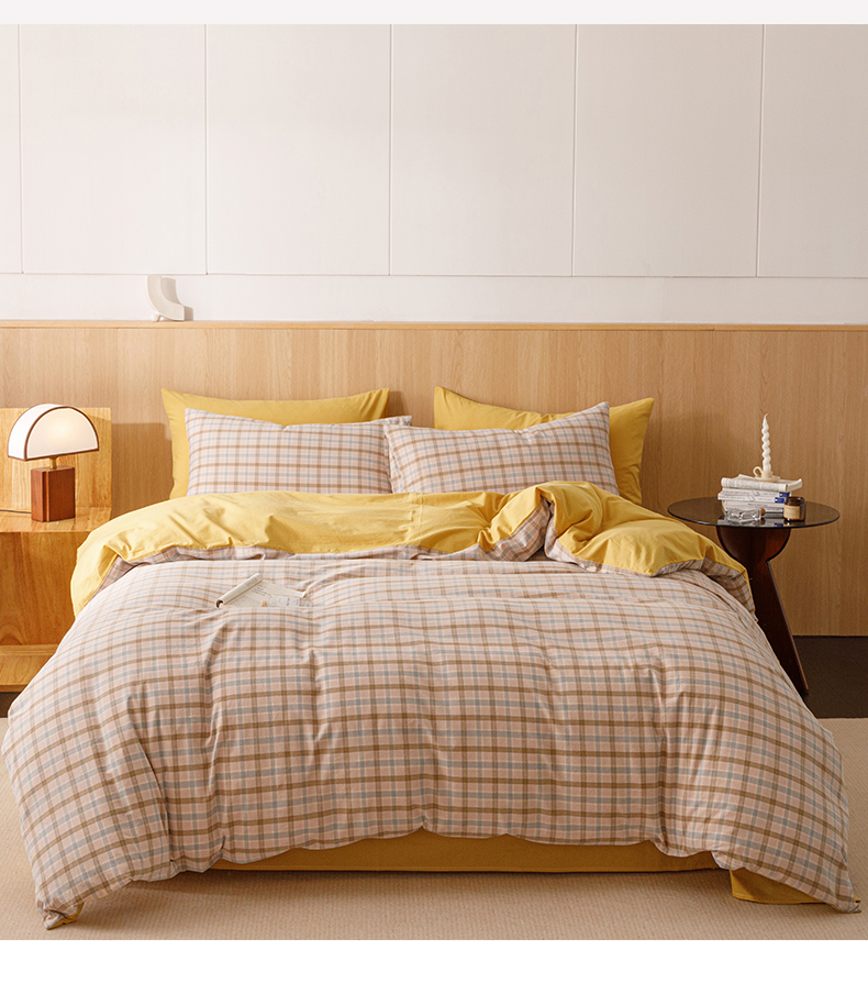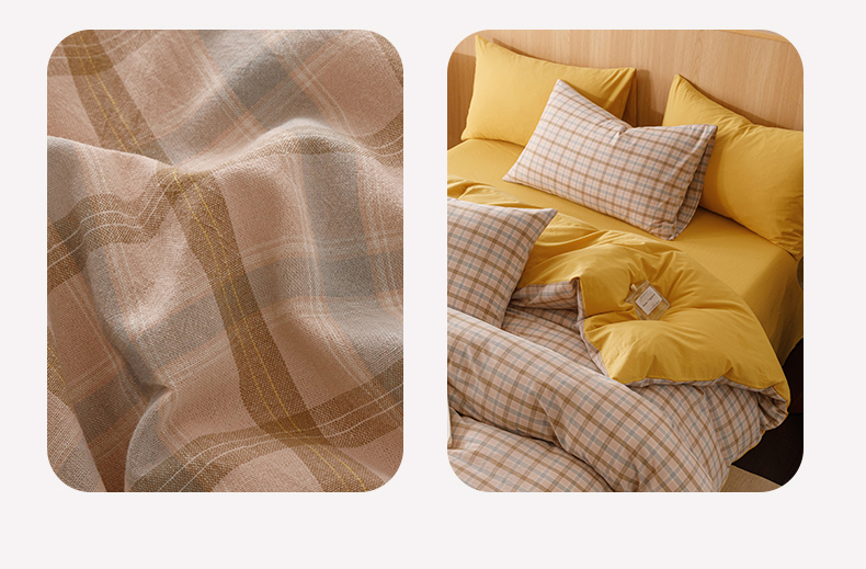当前位置: 91家纺网 > 商品网购 > 床品套件 > 四件套 > 全棉普通四件套 > 恬思语2025新款全棉色织水洗棉四件套 云水黄格