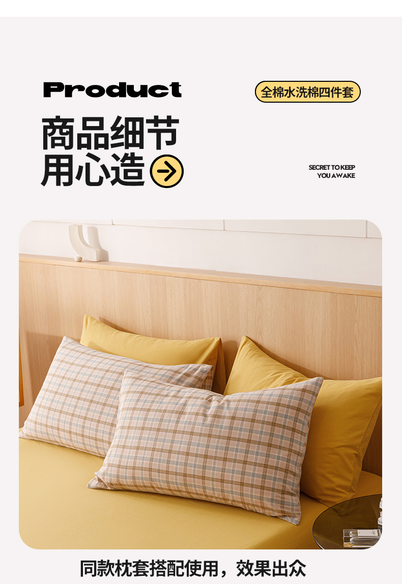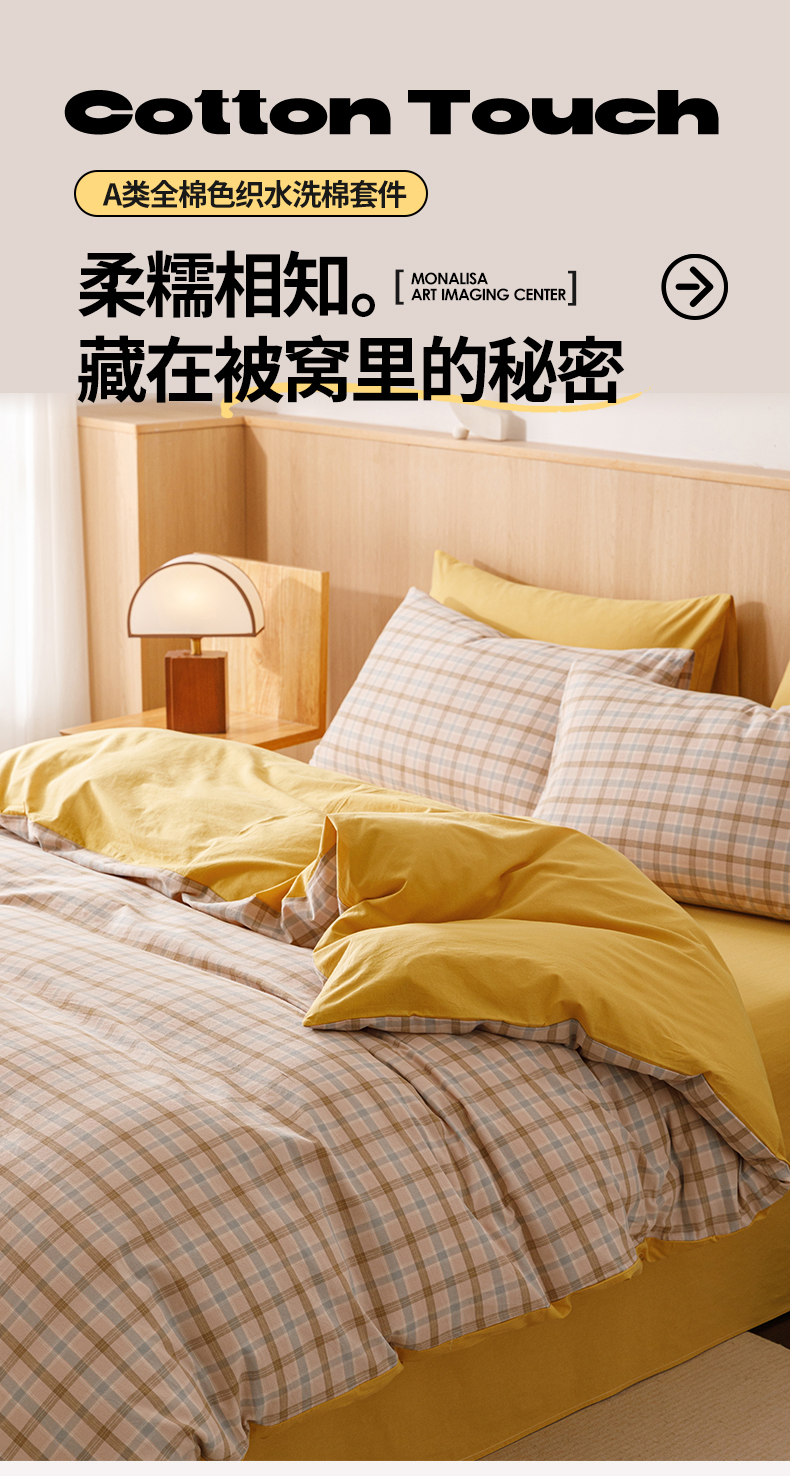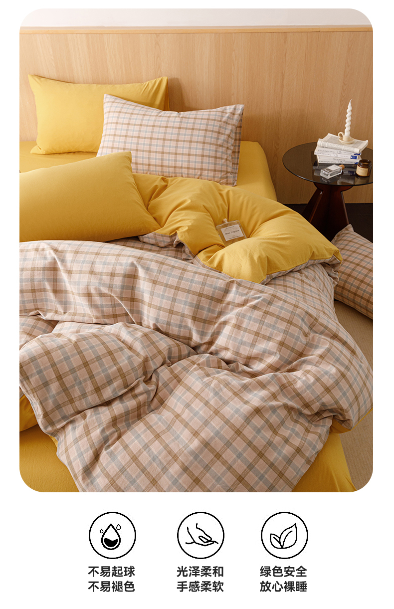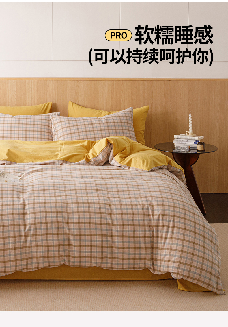 当前位置: 91家纺网 > 商品网购 > 床品套件 > 四件套 > 全棉普通四件套 > 恬思语2025新款全棉色织水洗棉四件套 云水黄格
