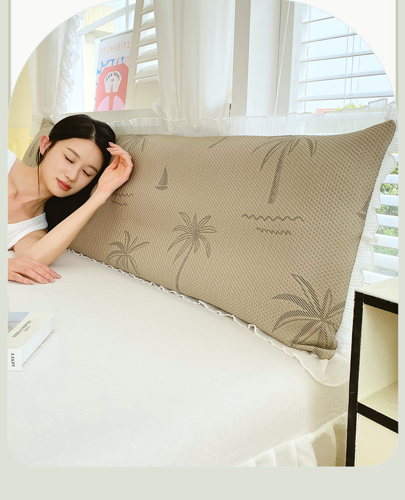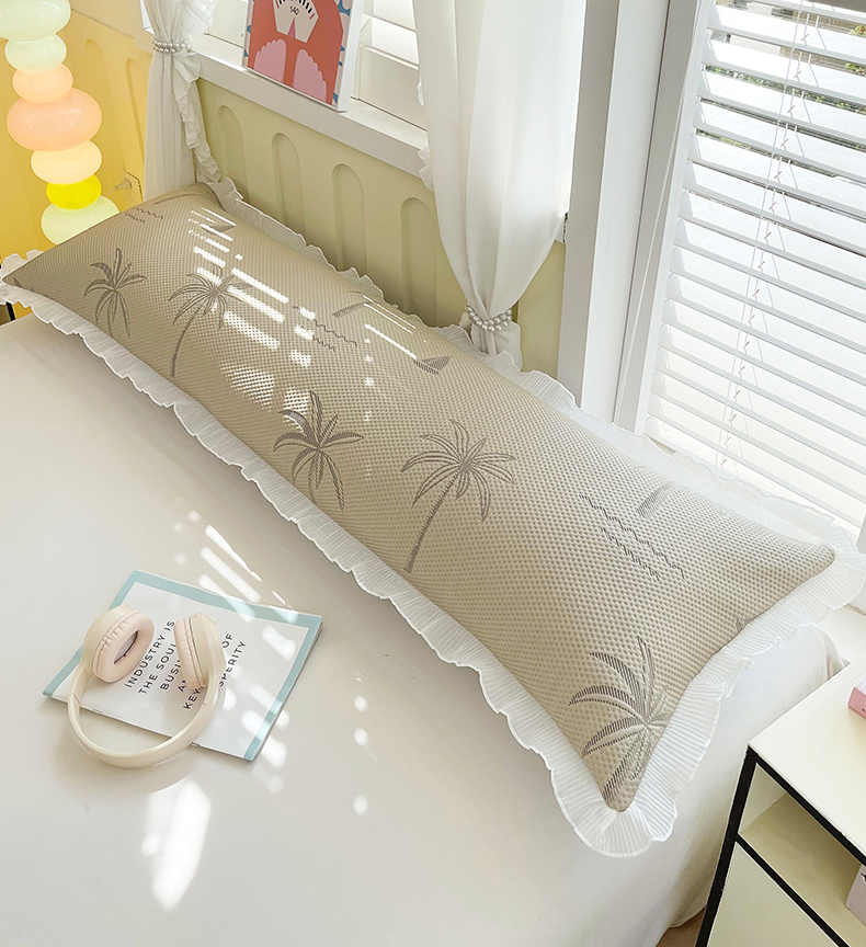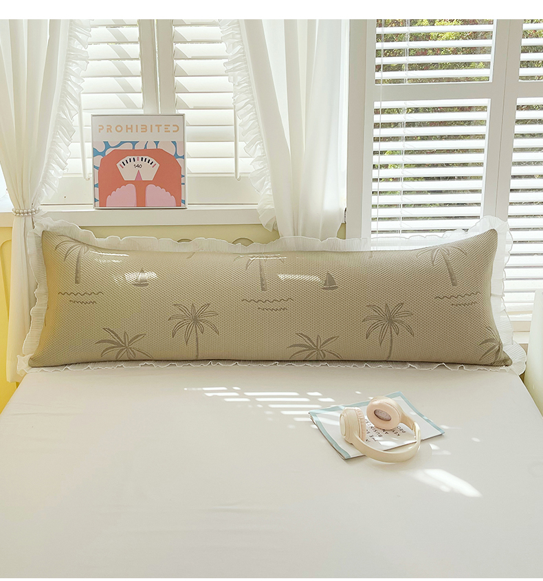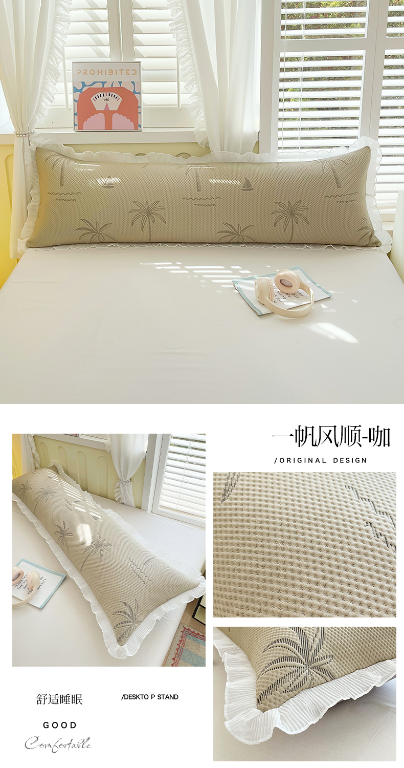 商品名称:雨彤家纺 2025新款冰豆豆蕾丝花边双人长枕套单品枕套枕套单件 一帆风顺-咖