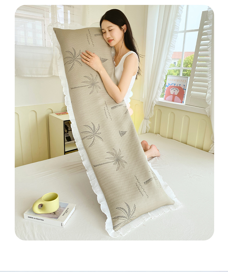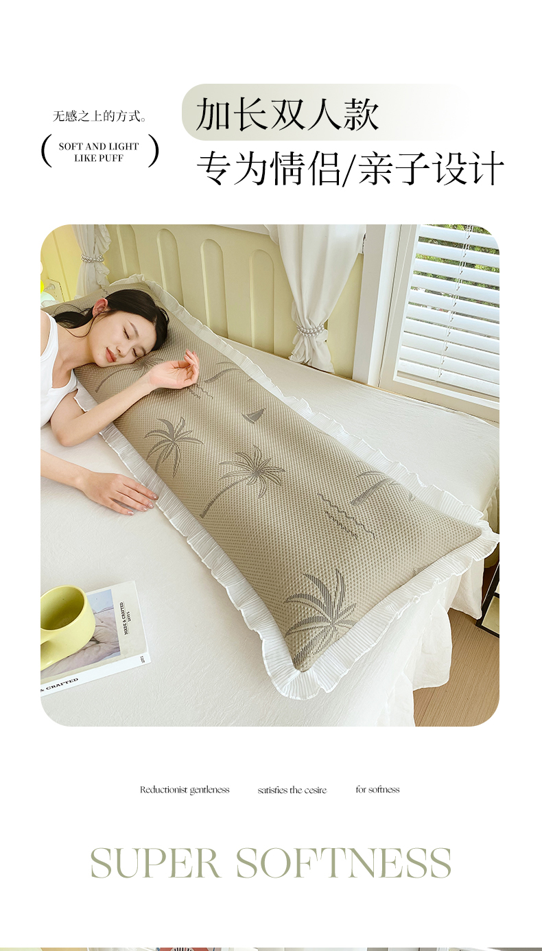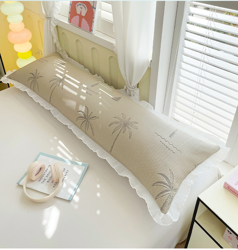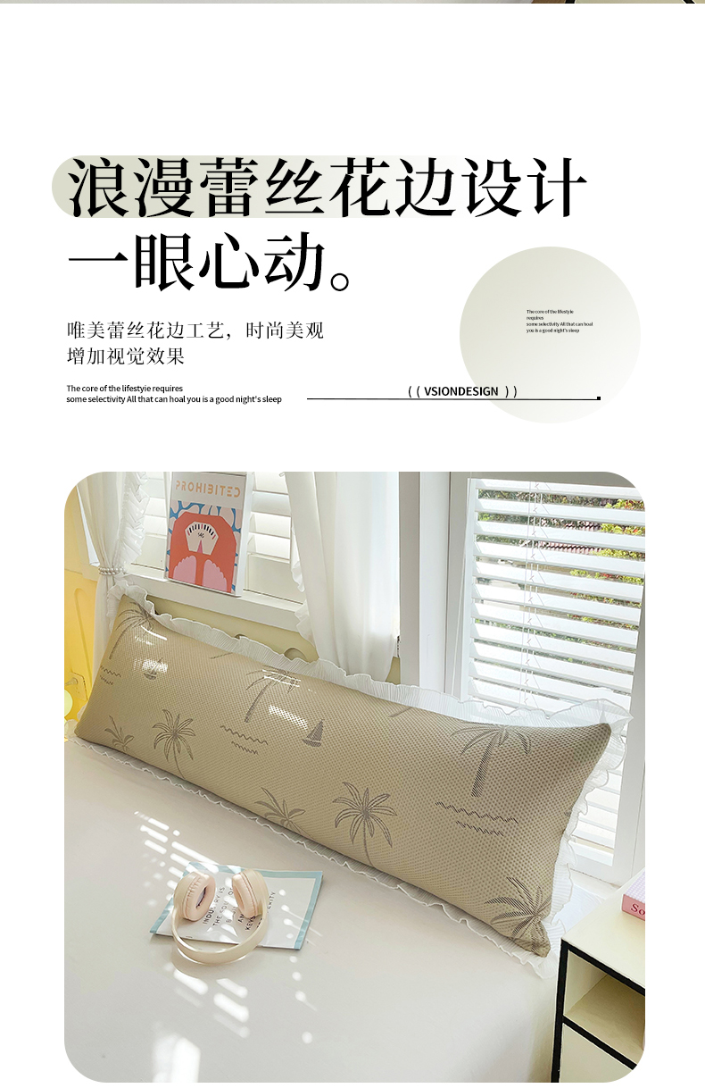商品名称:雨彤家纺 2025新款冰豆豆蕾丝花边双人长枕套单品枕套枕套单件 一帆风顺-咖