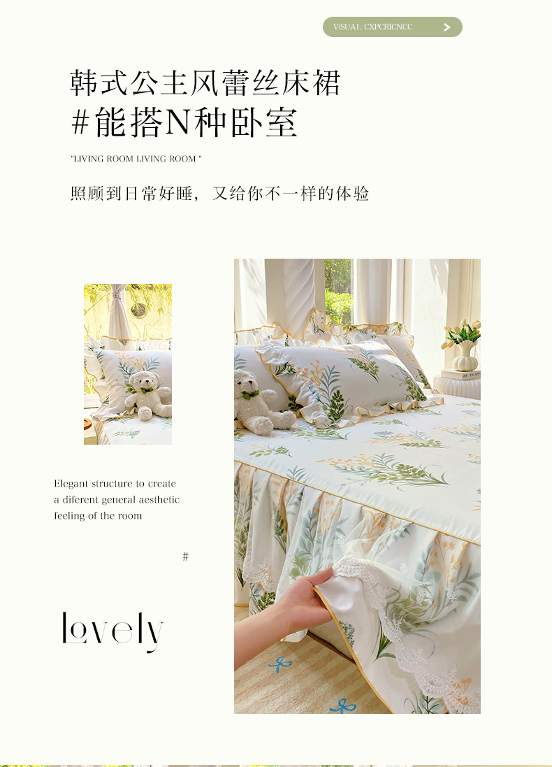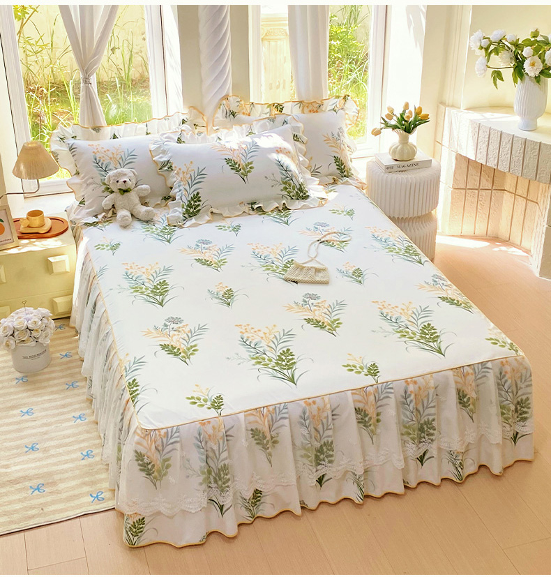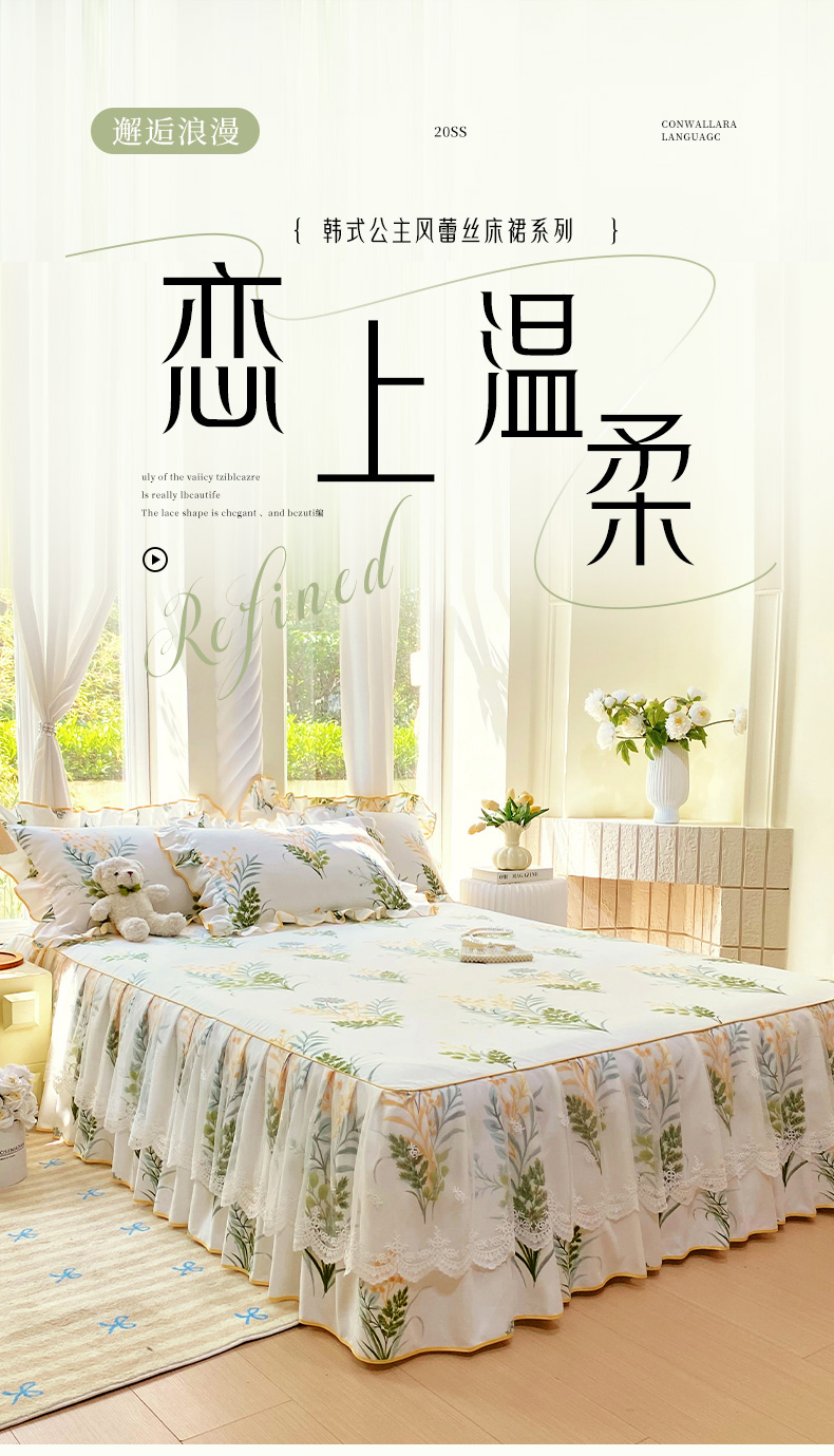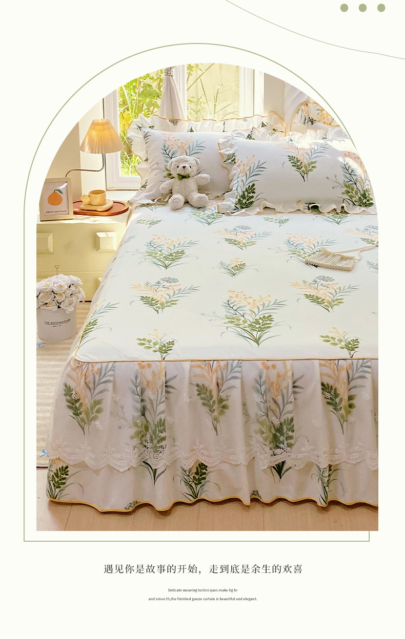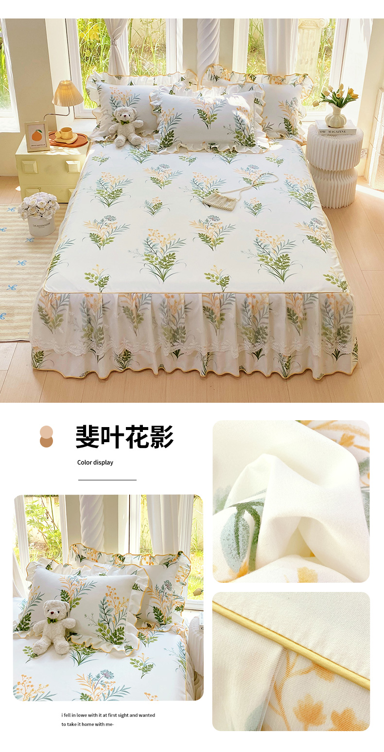 • 91家纺网 家纺一手货源 找家纺 雨彤家纺 2025新款高克重韩式公主风亲肤斜纹床裙单品床裙床裙单件 斐叶花影-公主风