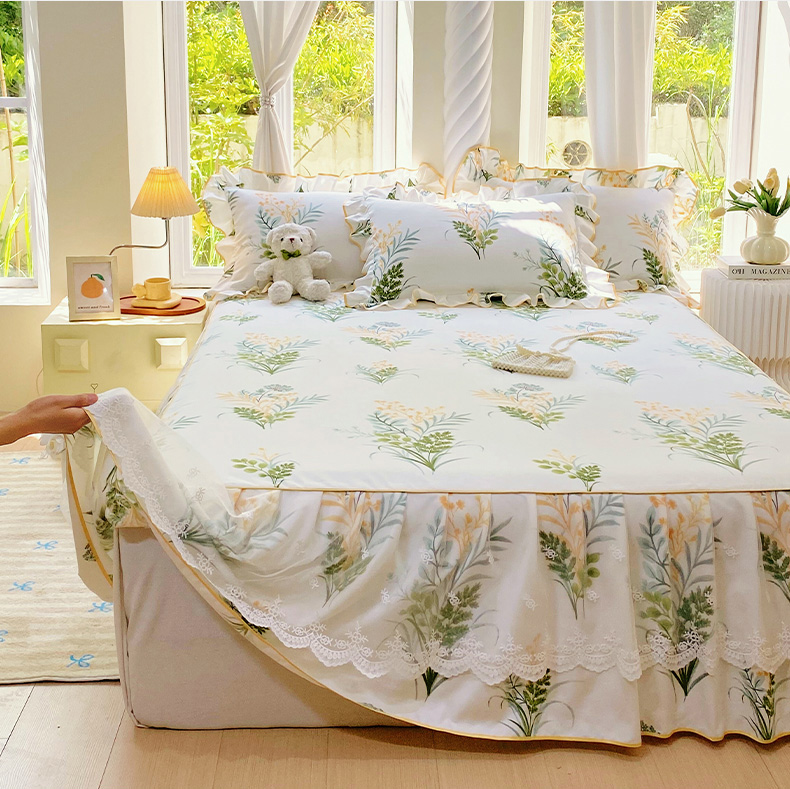 雨彤家纺 2025新款高克重韩式公主风亲肤斜纹床裙单品床裙床裙单件 斐叶花影-公主风