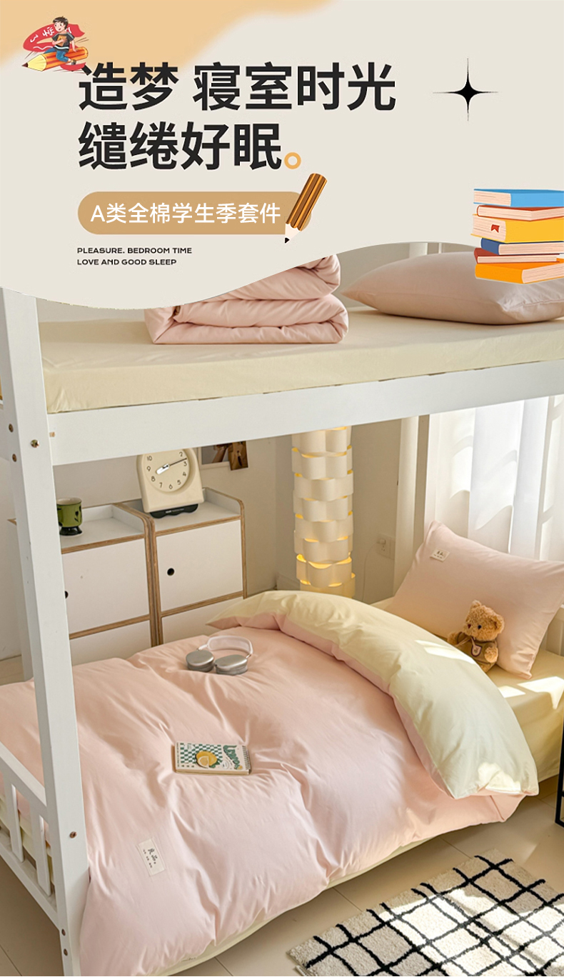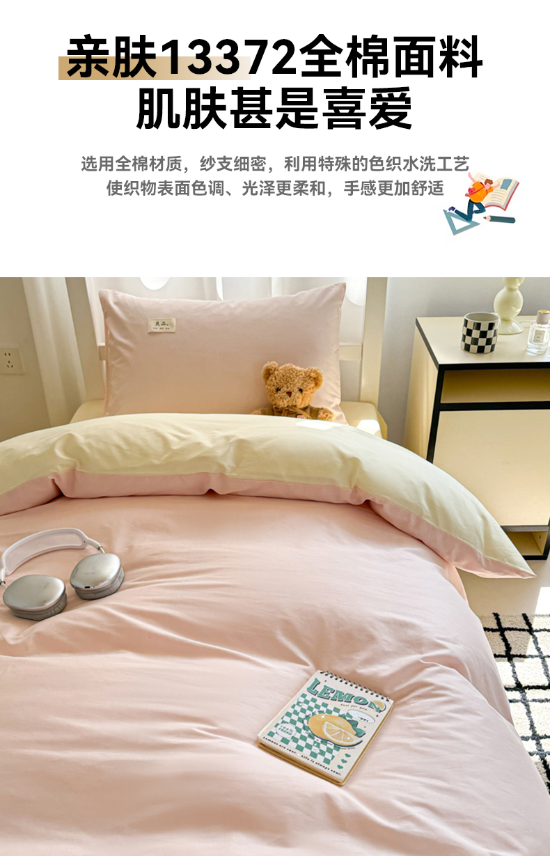 当前位置: 91家纺网 > 商品网购 > 床品套件 > 四件套 > 全棉普通四件套 > 眠博士 2025新款全棉纯棉40支双拼纯色四件套-学生款 全棉拼色-浅粉+浅黄