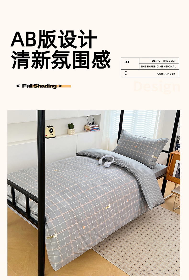 当前位置: 91家纺网 > 商品网购 > 床品套件 > 三件套 > 锦润家纺2025新款全棉13372学生三件套纯棉宿舍六件套 潮音-深灰