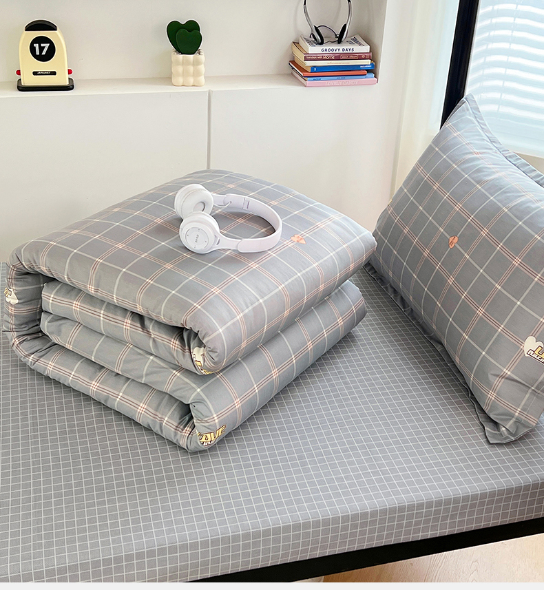 六件套:【三件套+4斤羽丝绒被子+4斤羽丝绒床垫(90*200)+枕芯】 | ¥150.00 |