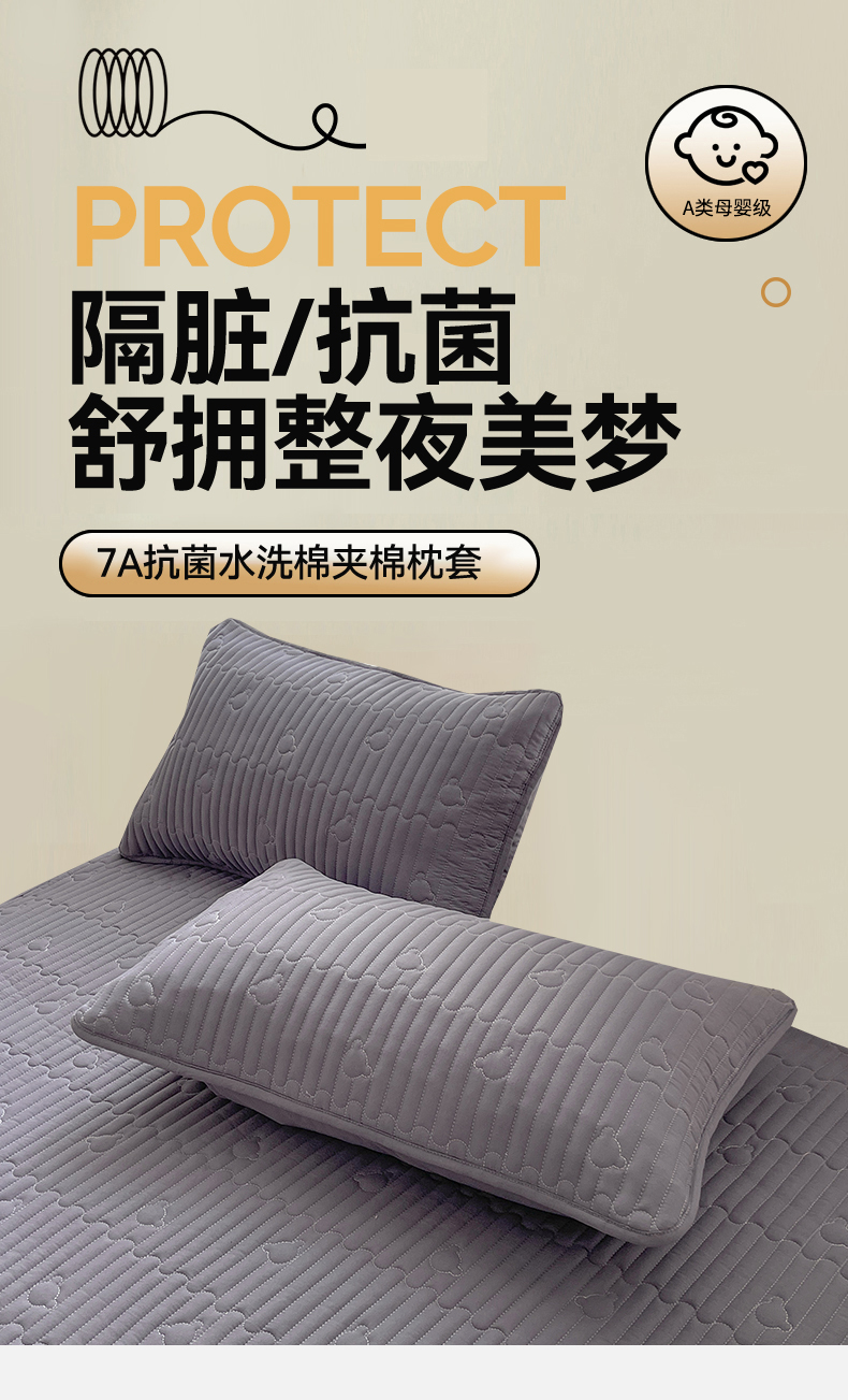 商品名称:雯豆家纺 2025新品夹棉防水放污枕套枕芯保护套一对装单只枕皮 洛川-深空灰