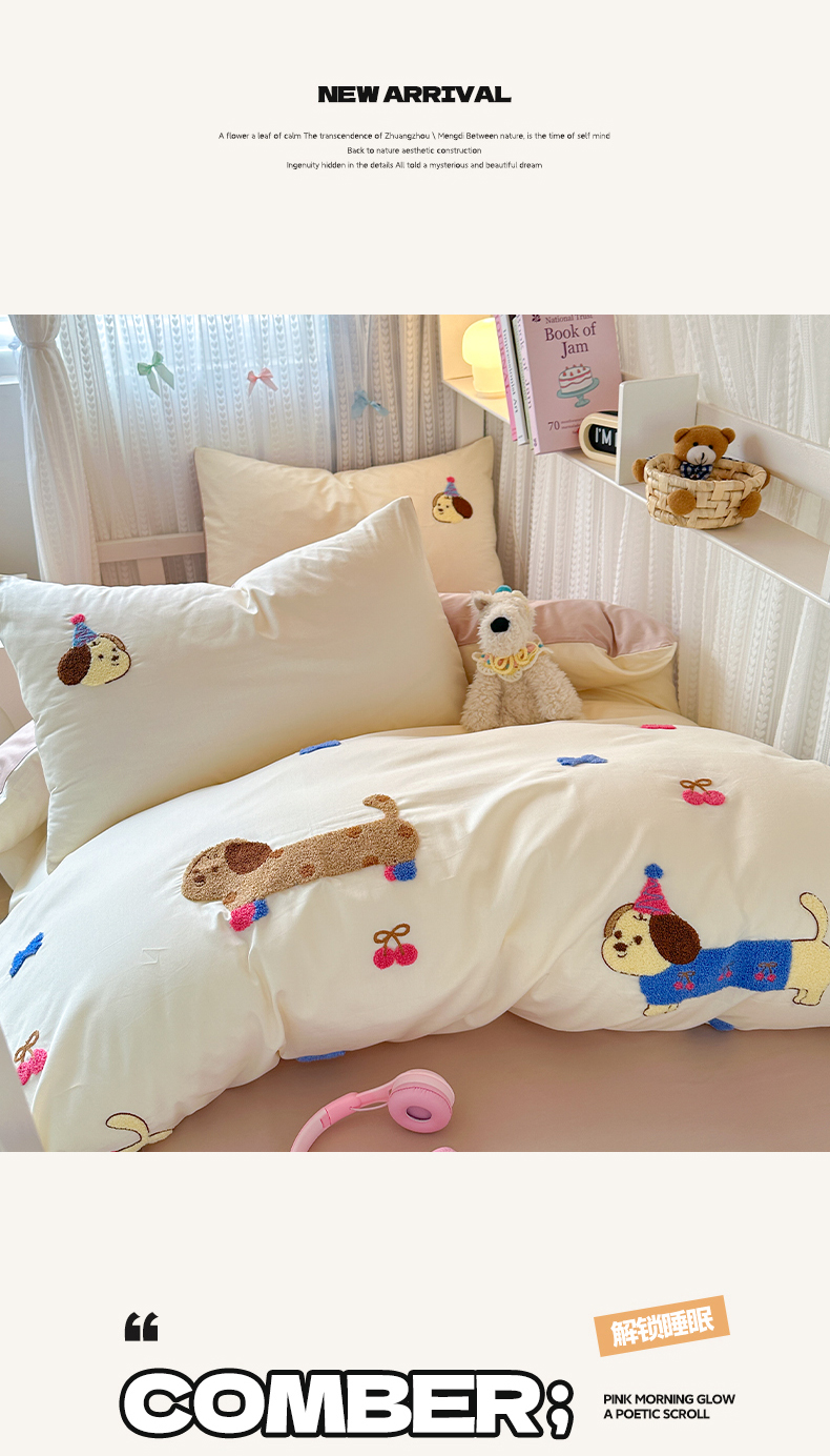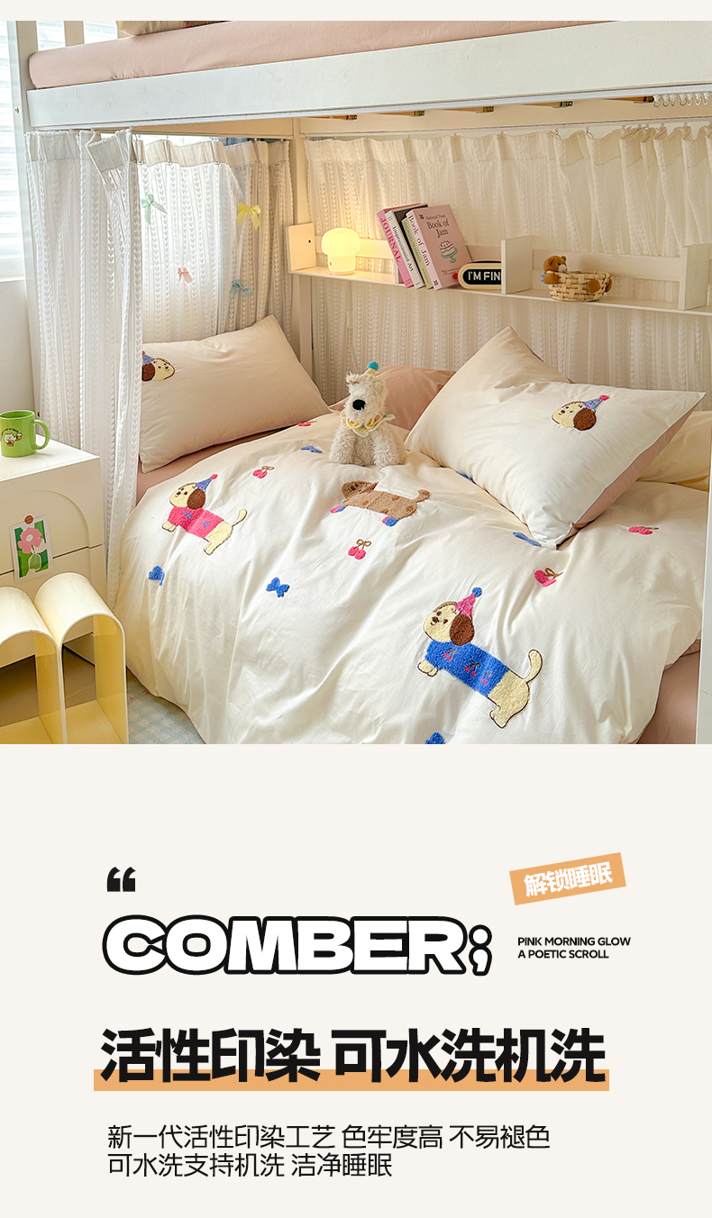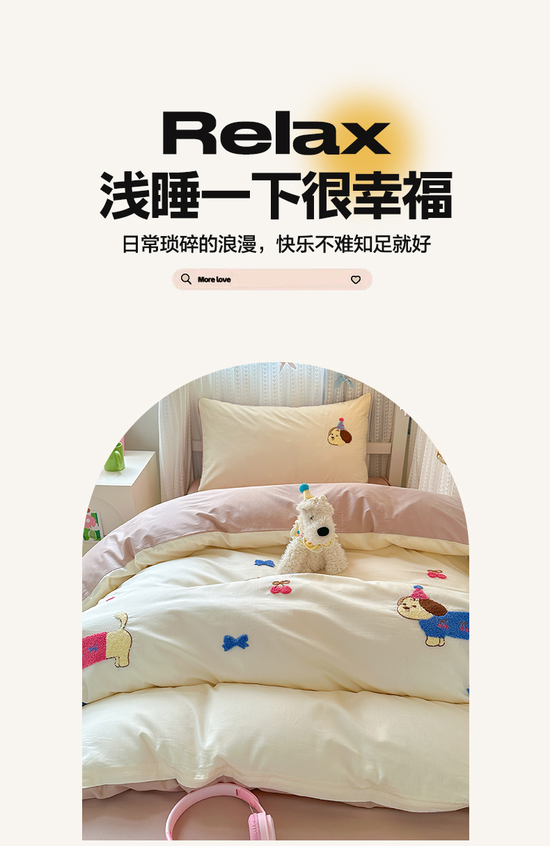 当前位置: 91家纺网 > 商品网购 > 床品套件 > 四件套 > 全棉普通四件套 > 如意朵 2025新款全棉小清新绣花学生季三四件套 狗狗家族
