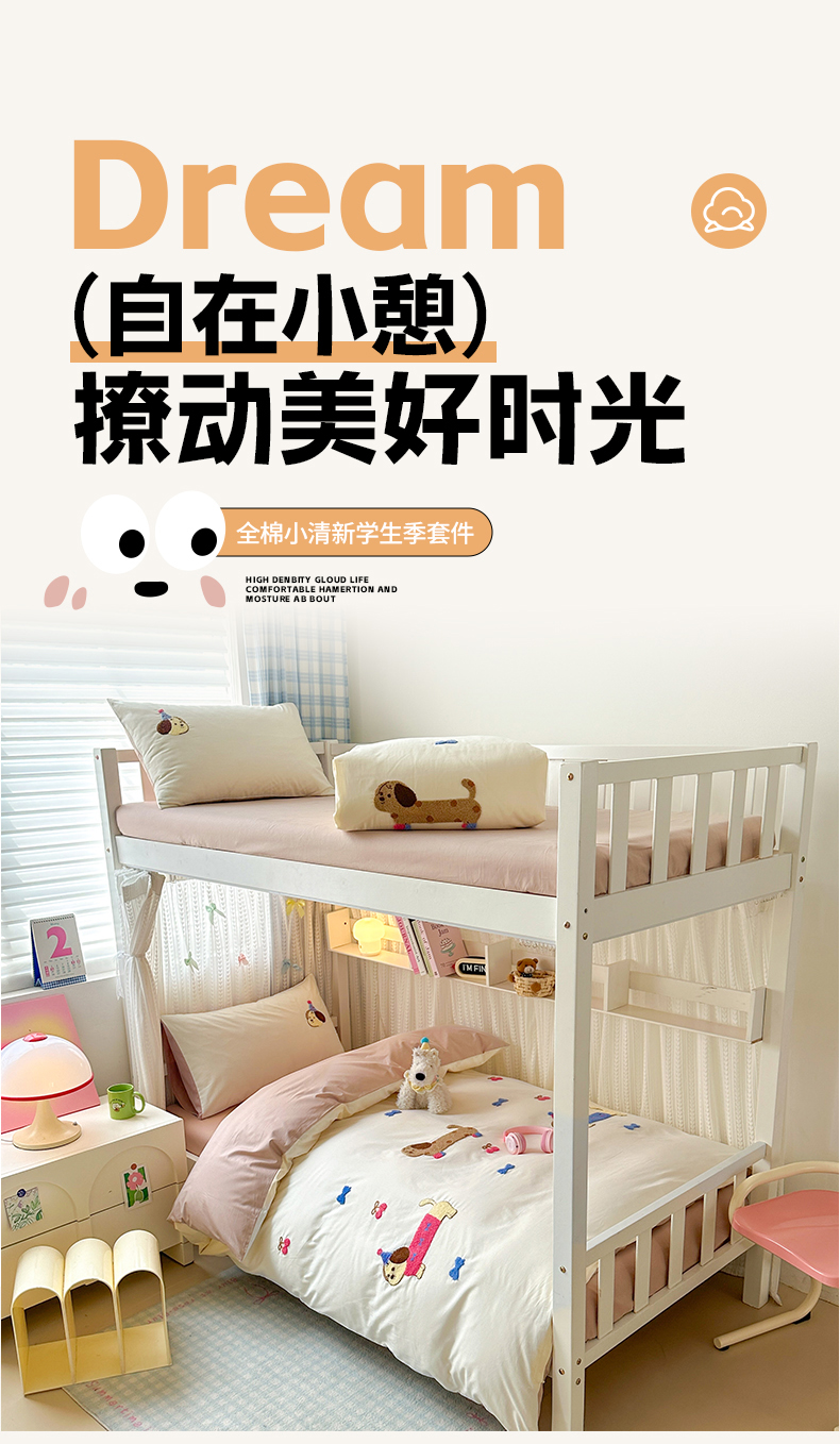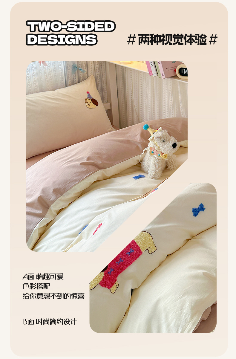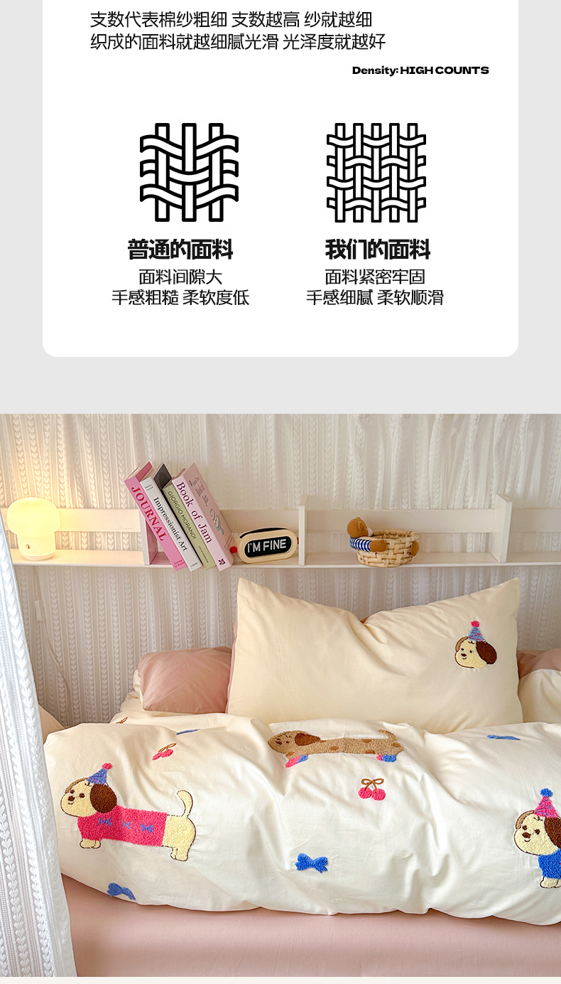 当前位置: 91家纺网 > 商品网购 > 床品套件 > 四件套 > 全棉普通四件套 > 如意朵 2025新款全棉小清新绣花学生季三四件套 狗狗家族