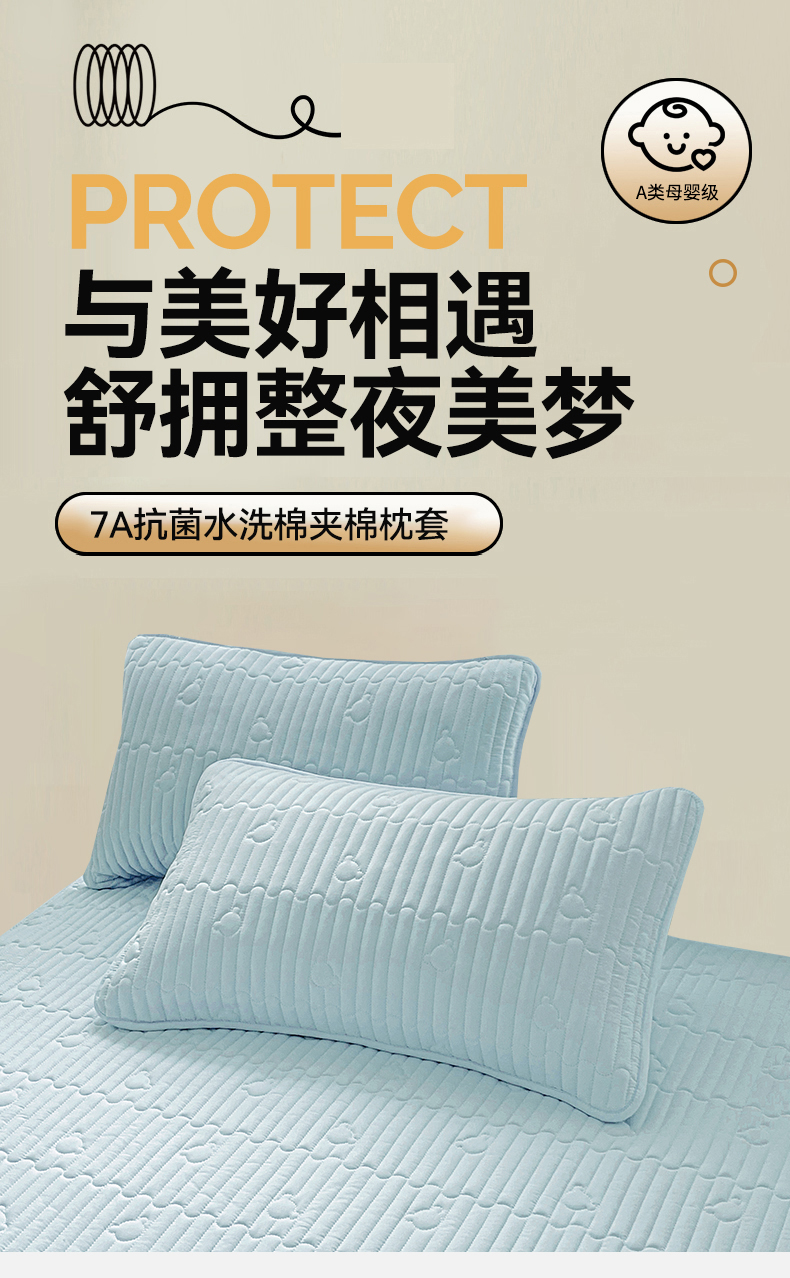 商品名称:雯豆家纺 2025新品夹棉枕套枕芯保护套一对装单只枕皮 洛川-淡水蓝