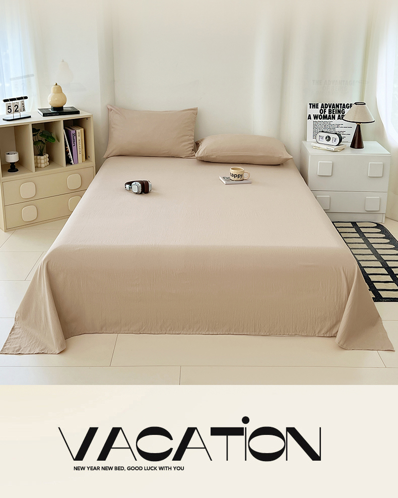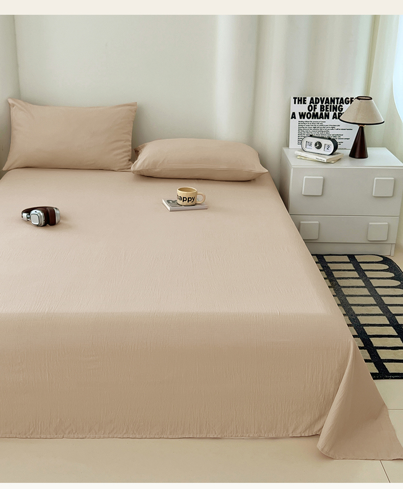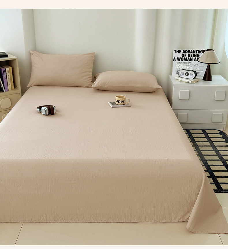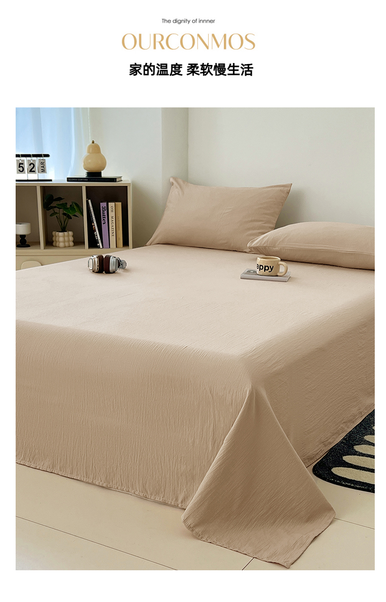 彩韵家纺 2025新款木m双层纱床单 浅卡其