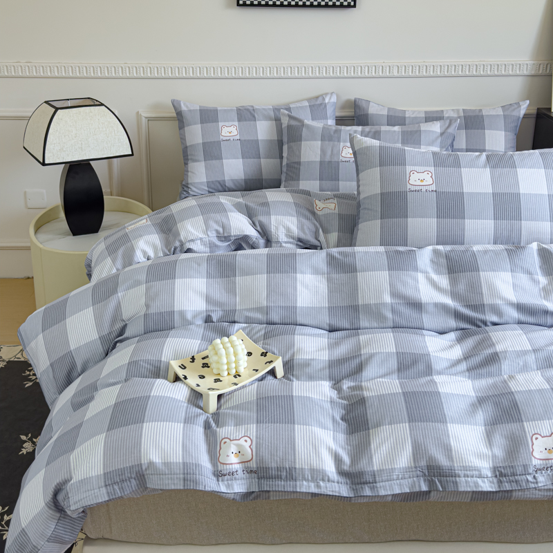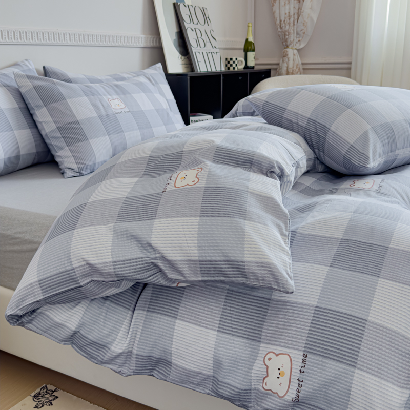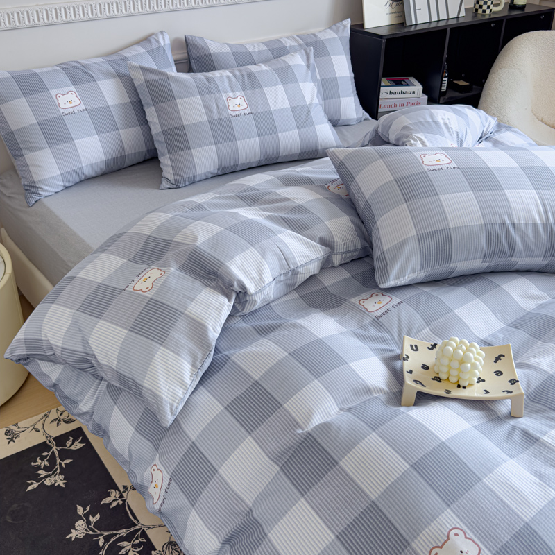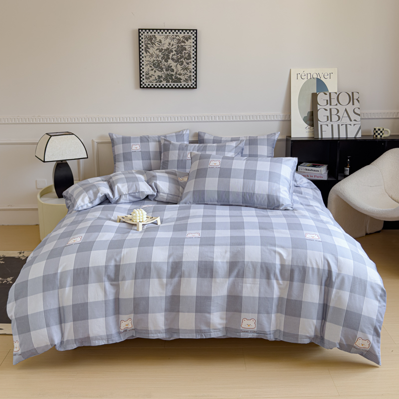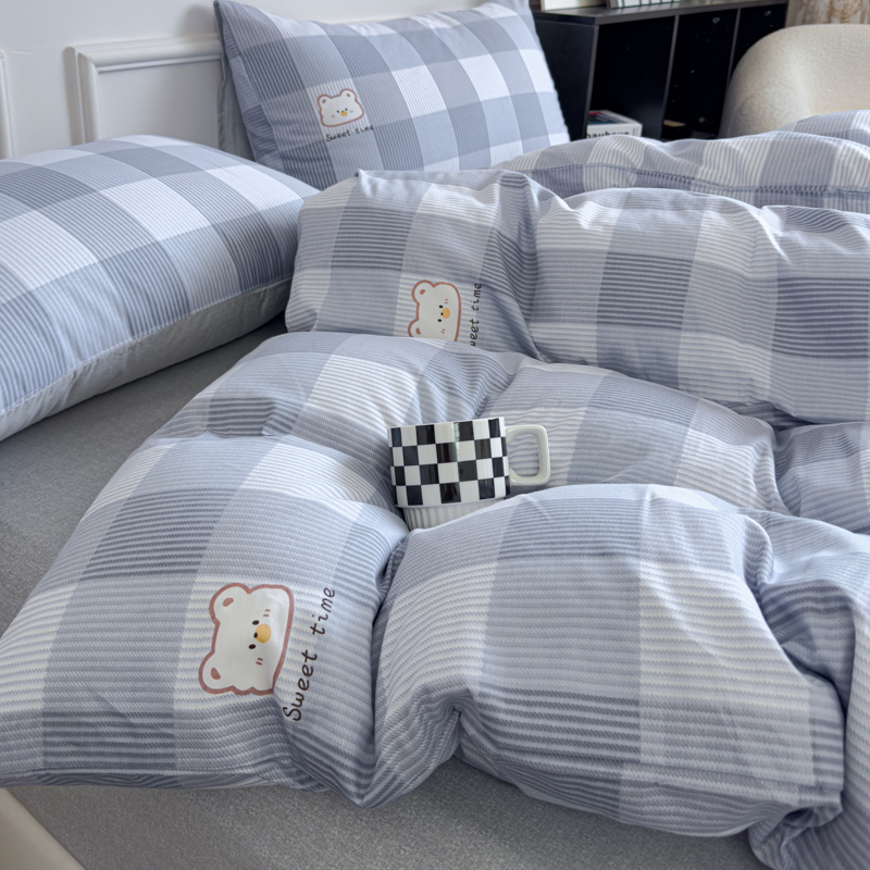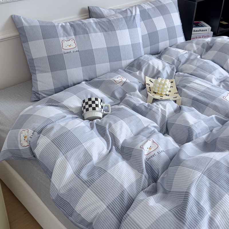 耀悦家纺 2025新款13070全棉印花四件套 格子小熊