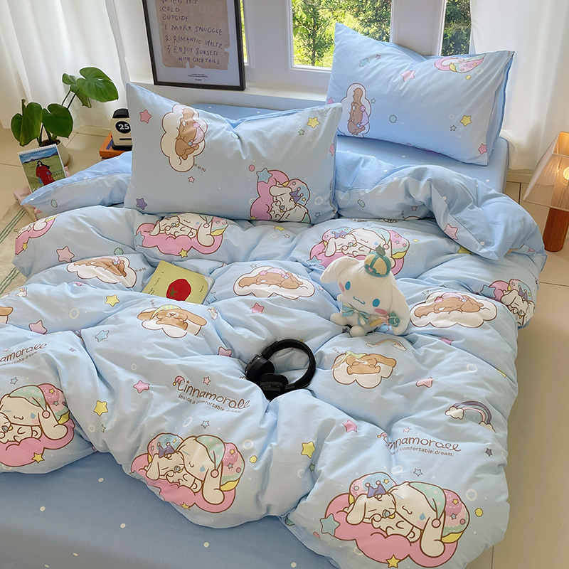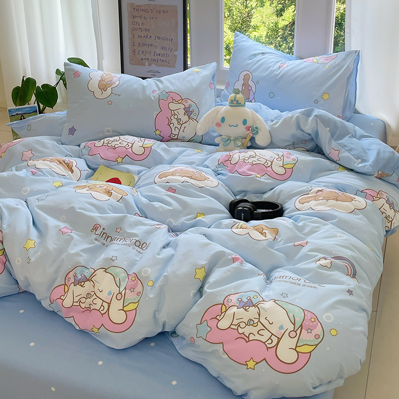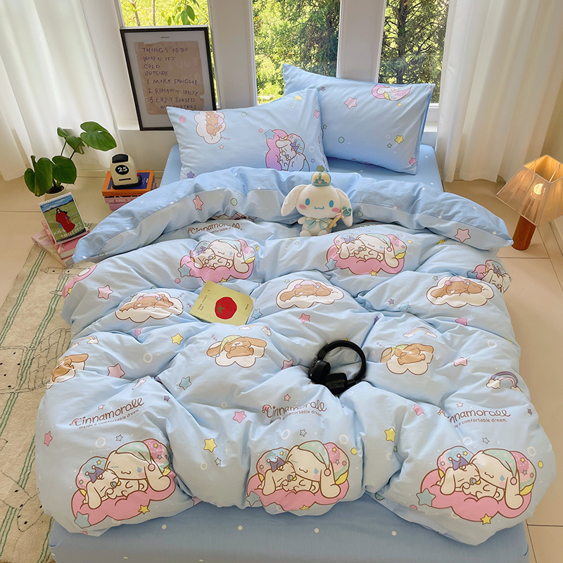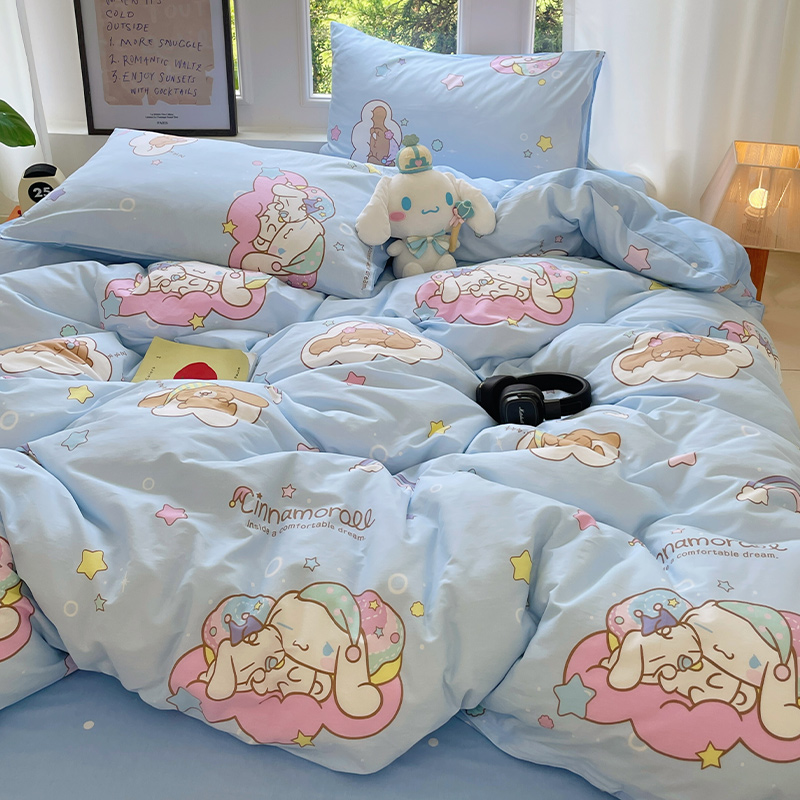 (总)蓝邻家纺 2024新款三丽鸥正版授权学生宿舍全棉印花四件套,甜甜库洛米,粉格美乐蒂,米酷粉,米酷紫,妙可乐园,牛奶大耳狗,玉桂狗