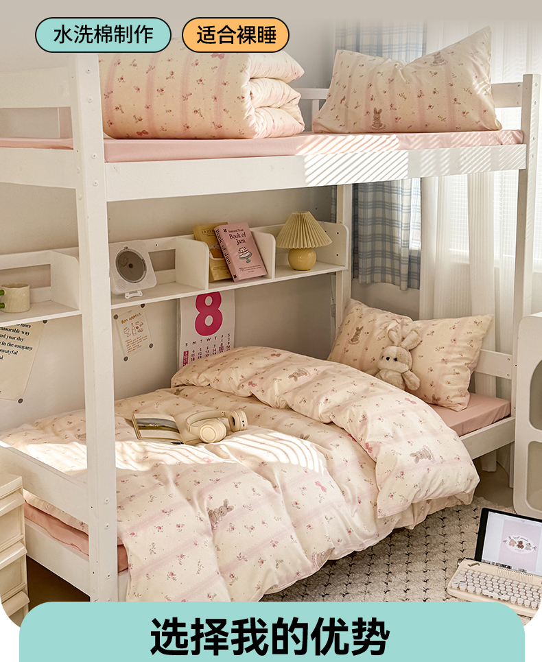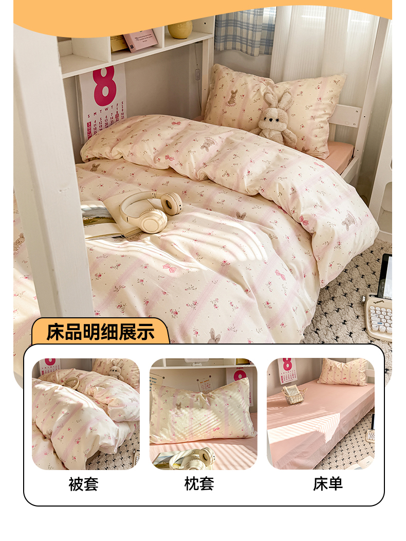 当前位置: 91家纺网 > 商品网购 > 床品套件 > 三件套 > 多品家纺 2025新款ins风水洗棉学生宿舍上下铺三件套 小兔斑比
