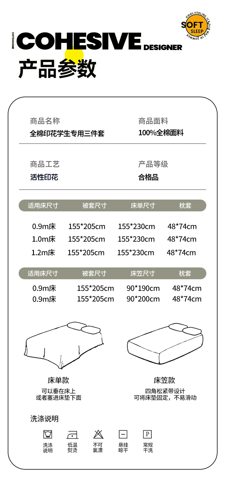 0.9m床单款三件套【被套1.55*2.05床单1.55*230 枕套48*74*1只】 | ¥85.00 |