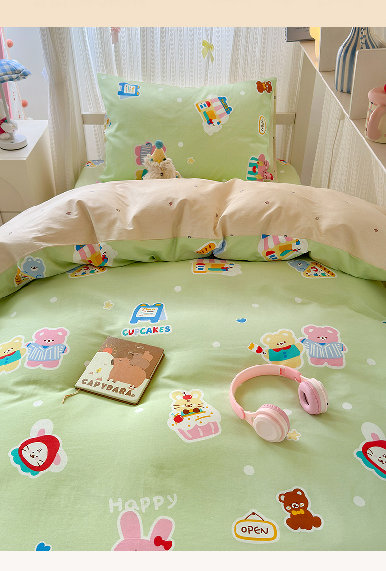 当前位置: 91家纺网 > 商品网购 > 床品套件 > 三件套 > 曼之夏 2025新款全棉纯棉印花学生宿舍上下铺三件套 趣味熊