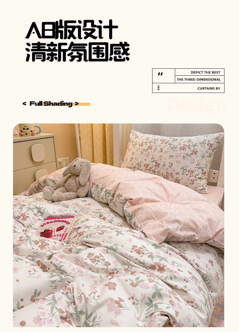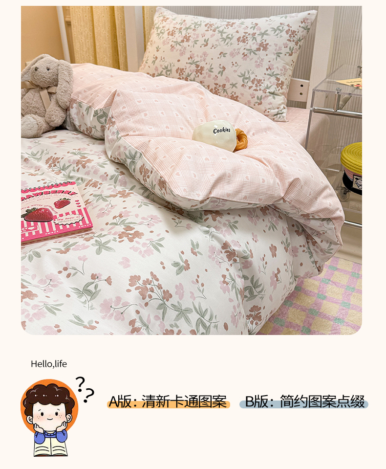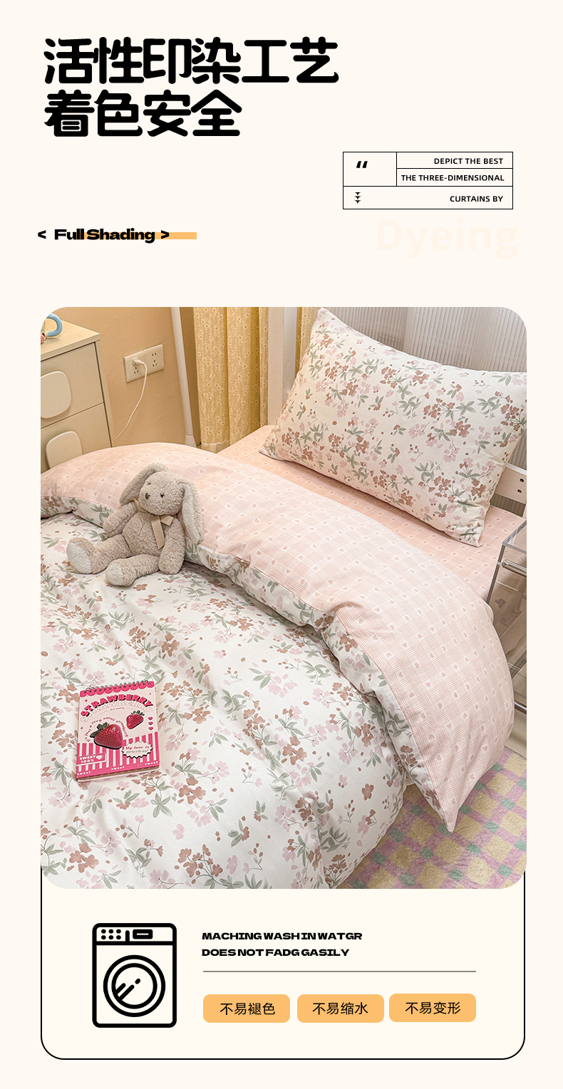 当前位置: 91家纺网 > 商品网购 > 床品套件 > 三件套 > 小懒猪 2025新款ins风小红书同款卡通小清新13372全棉纯棉AB版学生上下铺三件套 浮花薇