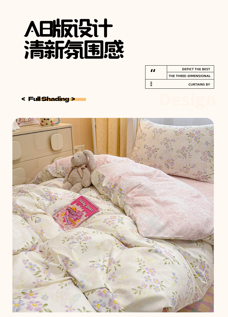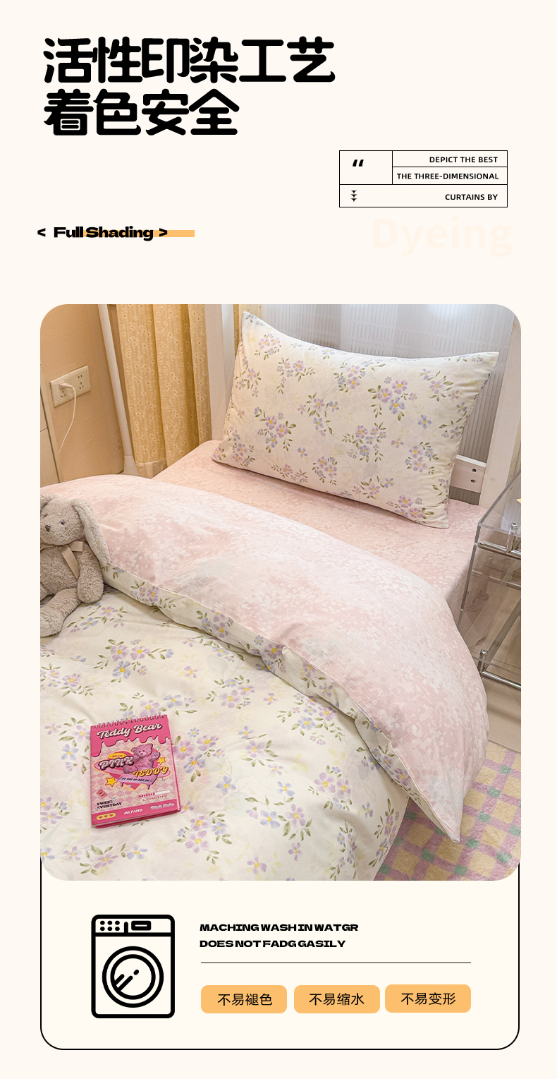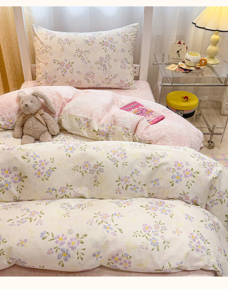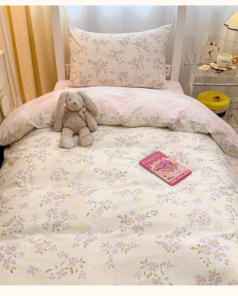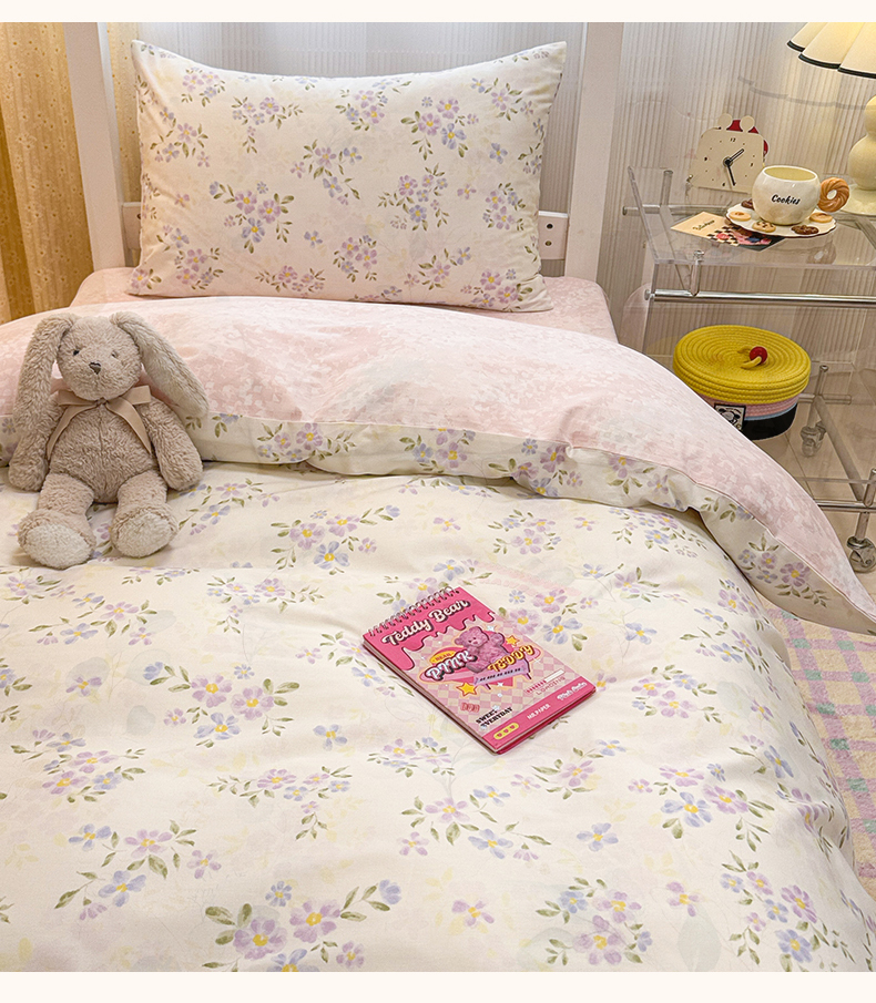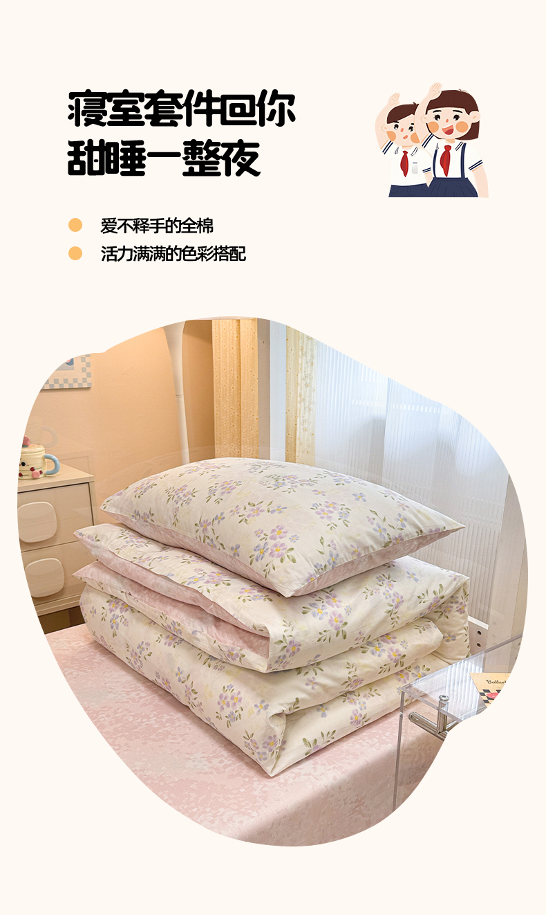 当前位置: 91家纺网 > 商品网购 > 床品套件 > 三件套 > 小懒猪 2025新款ins风小红书同款卡通小清新13372全棉纯棉AB版学生上下铺三件套 紫婉花漾