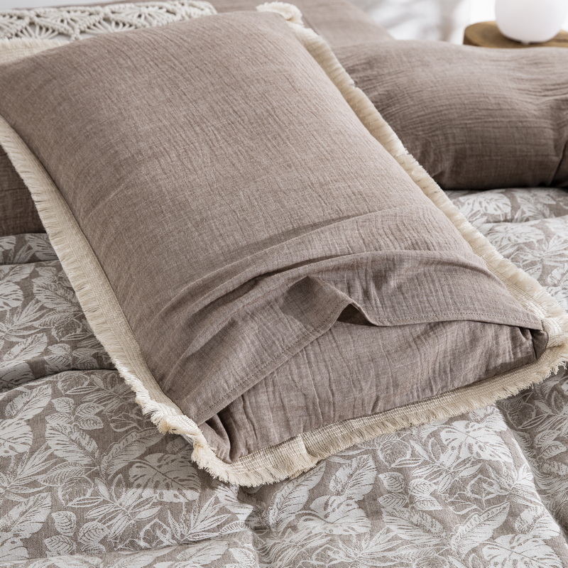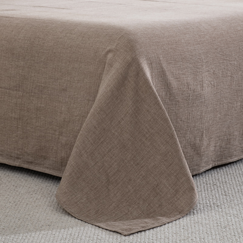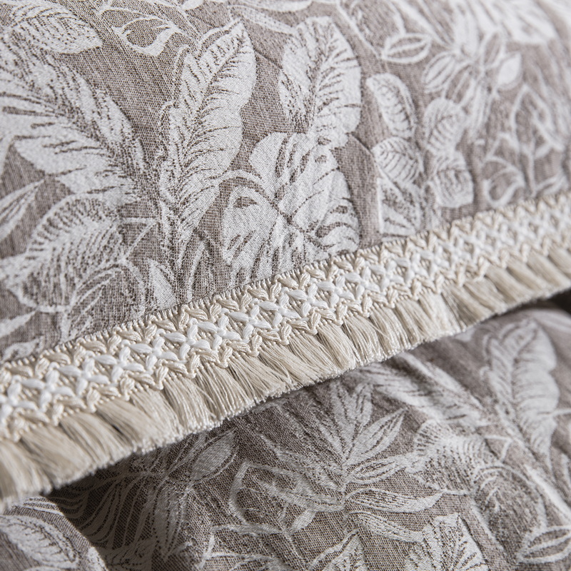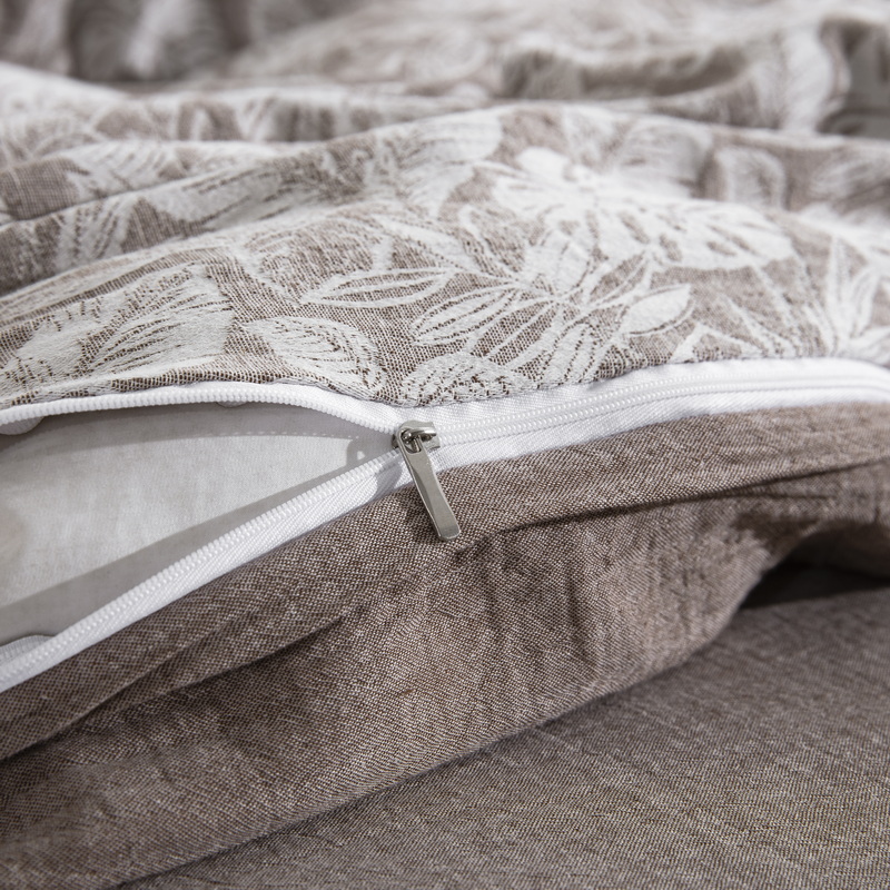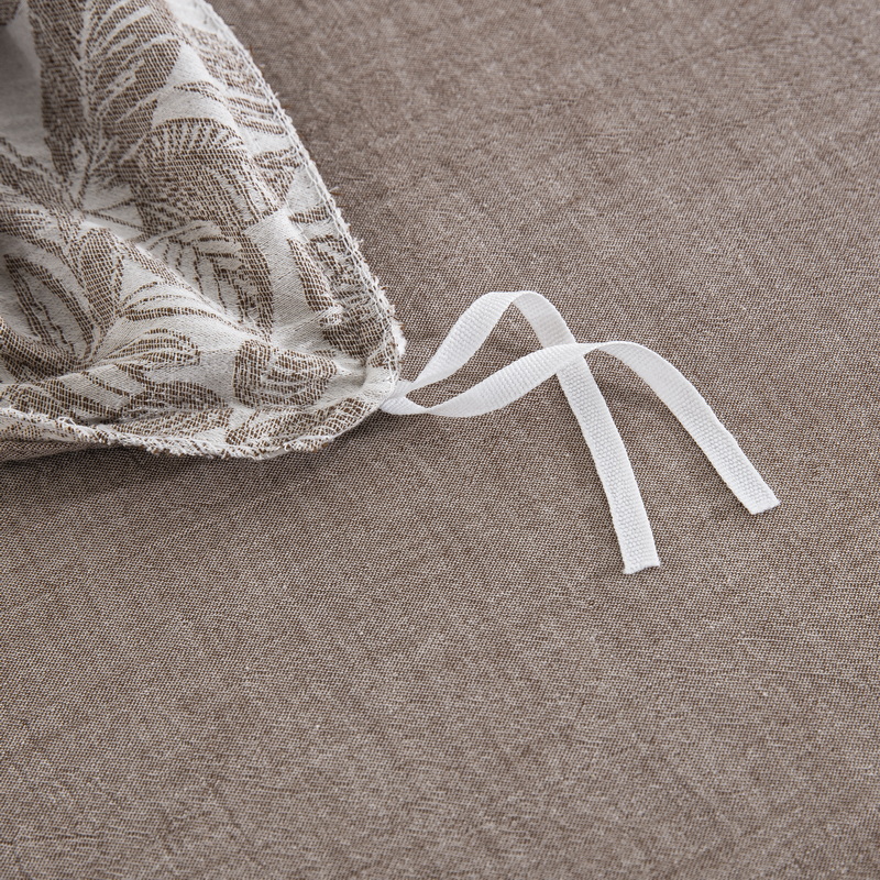 商品名称:鲁爱家纺供货 2025新款AB版棉麻工艺款四件套 龟背竹-咖