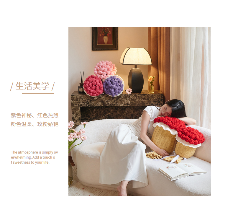 (总)暖绵绵家纺 2025新款网红少女心拍照礼物枕卧室沙发装饰抱枕单抱枕(最低零售价:小号133元,大号167元),美伢花(含芯)
