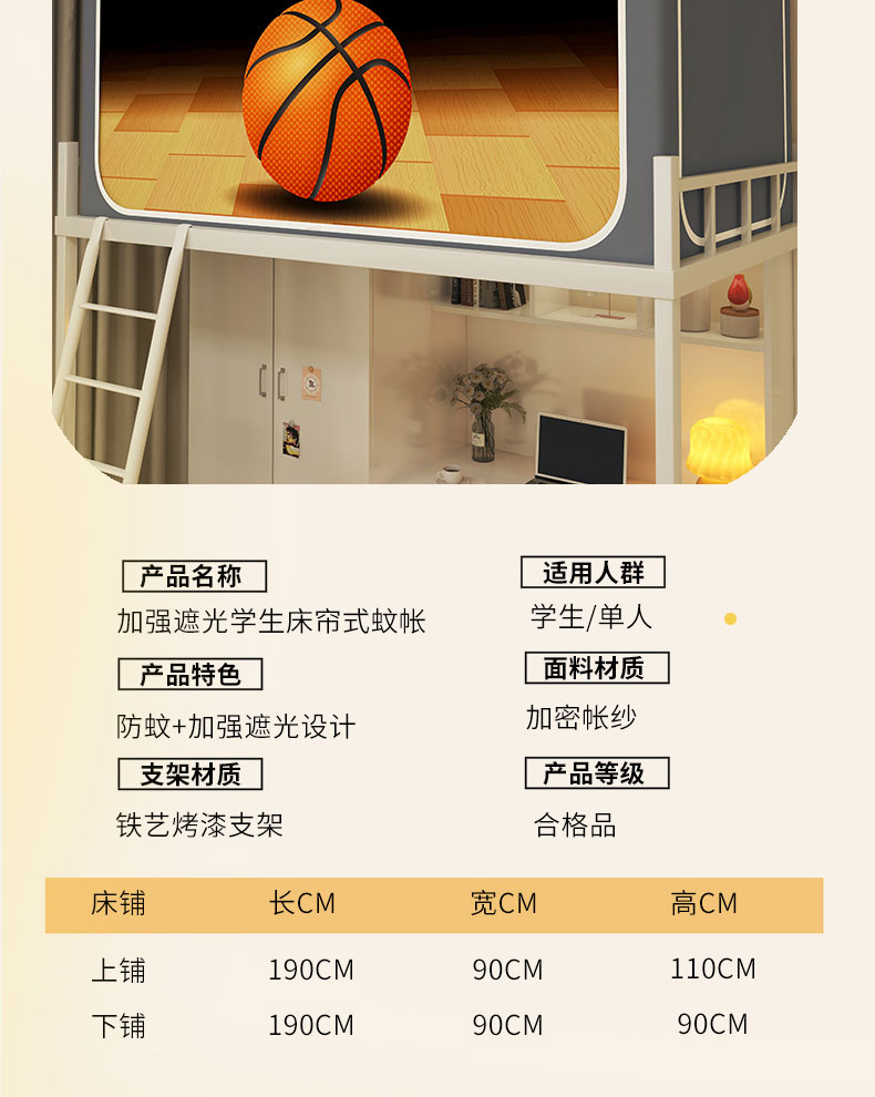 当前位置: 91家纺网 > 商品网购 > 床上用品 > 蚊帐 > 拉幕式蚊帐 > 宅部落 2025新款学生床帘宿舍上下铺床帘式印花强遮光学生蚊帐-印花系列 篮球火