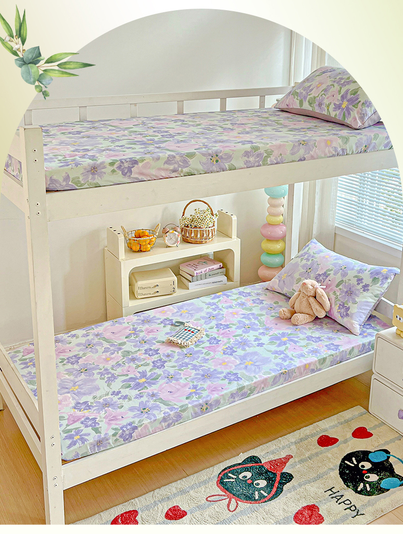 名兮家居 2025新款全棉纯棉13372学生印花上下铺床笠单床笠单品床笠单件床笠 初秋紫